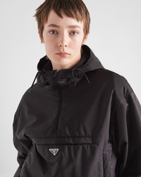 This sporty, versatile jacket is made of Re-Nylon, an innovative sustainable fabric. The garment featuring technical details such as a hood and elasticized cuffs with adjustable hook-and-loop straps reinterprets typical sportswear designs. The enameled metal triangle logo decorating the garment stands out on the front. For sustainable care to preserve the product's characteristics and reduce microfiber shedding, we recommend not washing the item too often. Let the product air out after every use and have it dry cleaned at a specialized ecological dry cleaners. - Product code: 29Z097_1WQ9_F0002_S_231 - Lined and padded - With hood - Long sleeves - Elasticized cuff - Zipper closure - Welt zipper pockets - Enameled metal triangle logo - Elasticized drawstring hem - Zipper on the right side - Horizontal zipper pocket on the front - Pressed garment - Fabric tabs - Drawstring hood - Comfortable regular fit, the garment fits up to one size larger - Imported - The model is 179 cm tall and wears a size 38 Height: 50cm MATERIALS Nylon