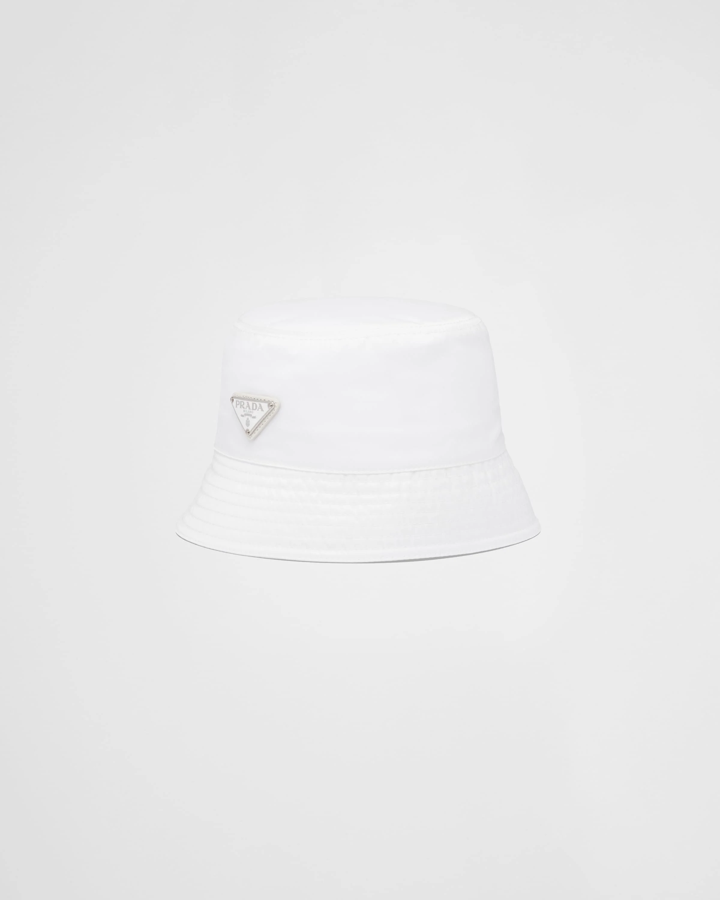 This bucket hat, an iconic accessory of Prada collections, is made of Re-Nylon: regenerated nylon yarn (ECONYL®)produced from recycled, purified plastic trash collected in the ocean, fishing nets and textile waste fibers. For sustainable care to preserve the product's characteristics and reduce microfiber shedding, we recommend not washing the item too often. Let the product air out after every use and have it dry cleaned at a specialized ecological dry cleaners. - Product code: 1HC137_2DMI_F0009 - Enameled metal triangle logo - Cotton lining - Imported MATERIALS Main material: Recycled polyamide
