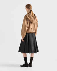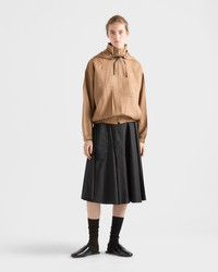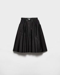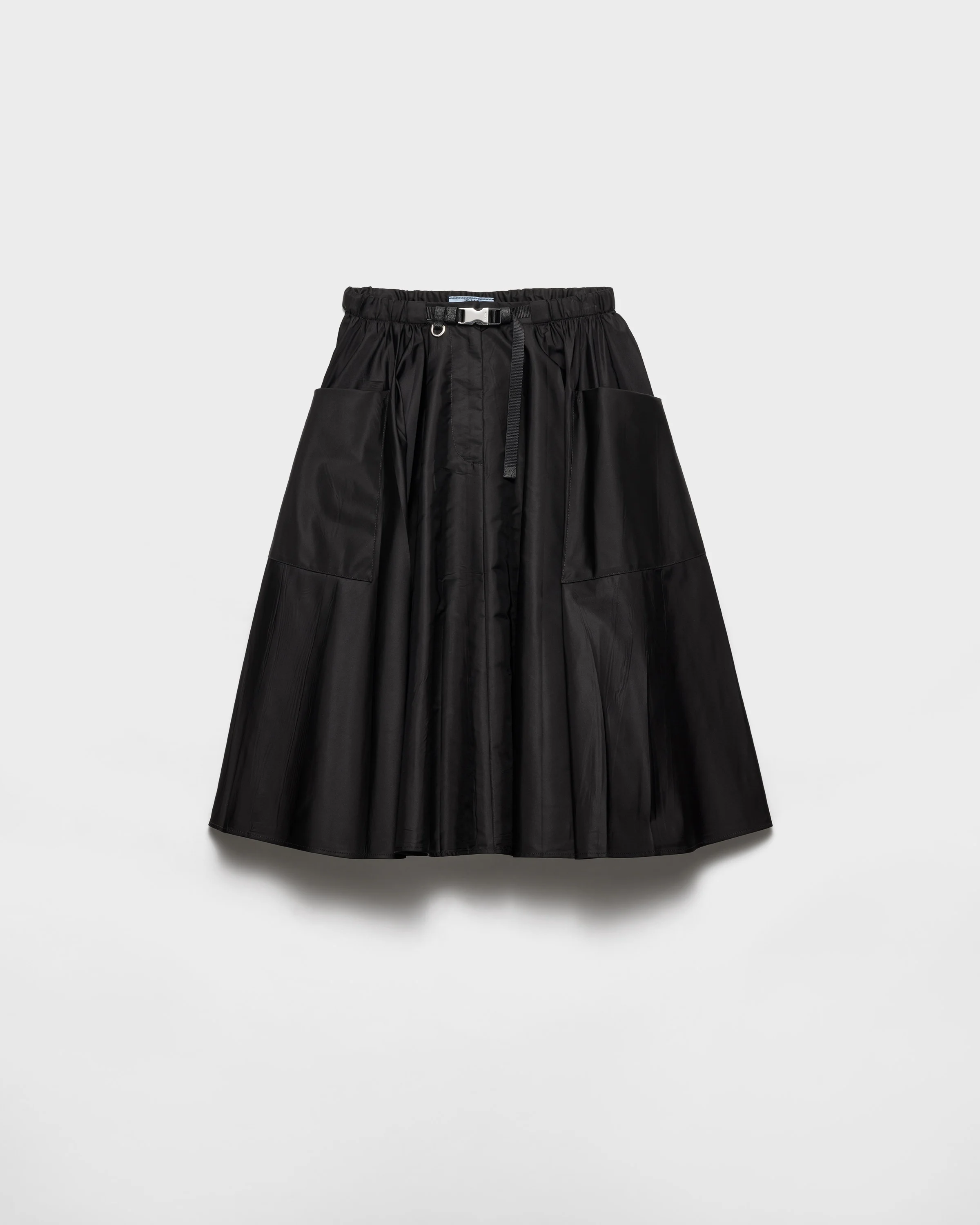 The Re-Nylon circle skirt, a distinctive silhouette of Prada collections, embodies unconventional femininity. The technical qualities of the emblematic fabric made of regenerated nylon transform the attitude of the style, completed by a sporty belt with side-release buckle. - Product code: 21Y023_1WQ8_F0002_S_OOO - Unlined garment - Conceptual triangle logo - Front pockets - Regular waist - Waistband with belt and side-release buckle - Pressed garment - Imported - The model is 178 cm tall and wears a size 38 Height: 70cm MATERIALS Main material: 100% Recycled Polyamide