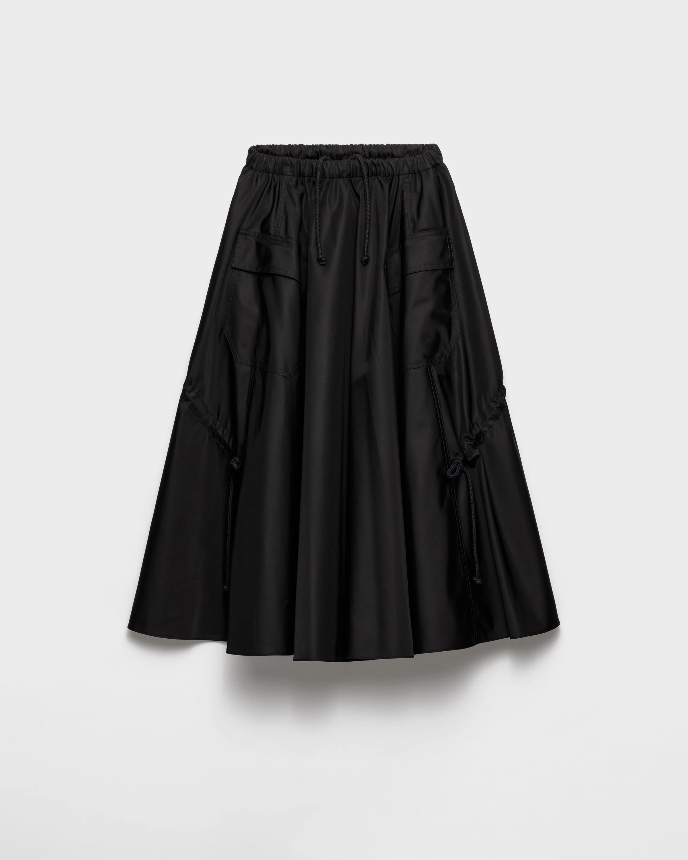 The circle skirt, an emblematic silhouette of Prada collections, is reinterpreted with new volumes and contemporary details. Blending classic elegance and sport, the style made of Re-Nylon is completed by the enameled metal triangle logo. For sustainable care to preserve the product's characteristics and reduce microfiber shedding, we recommend not washing the item too often. Let the product air out after every use and have it dry cleaned at a specialized ecological dry cleaners. - Product code: 21Y000_1WQ8_F0002_S_OOO - Unlined - Enameled metal triangle logo - Patch pockets - Elasticized waist - Drawstring on hips - Imported Height: 70cm MATERIALS Main material: 100% recycled polyamide