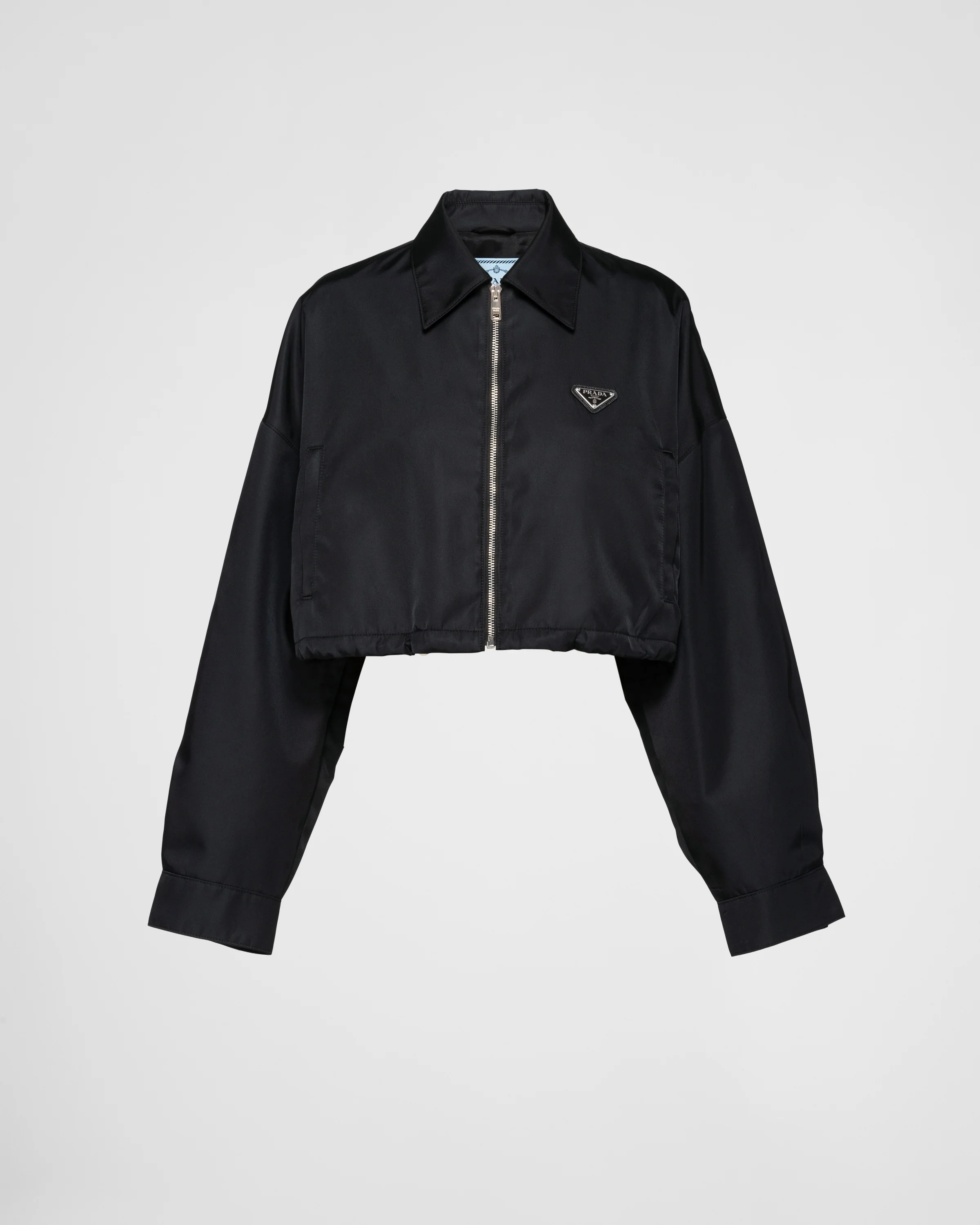 Clean, simple lines characterize this blouson with sophisticated, modern allure that recalls the classic men's shirt. Prada mixes different stylistic codes, creating designs with an innovative character. This style made of Re-Nylon stands out for the elasticized drawstring hem that gives it a sporty look. For sustainable care to preserve the product's characteristics and reduce microfiber shedding, we recommend not washing the item too often. Let the product air out after every use and have it dry cleaned at a specialized ecological dry cleaners. - Product code: 292101_1WQ8_F0002_S_231 - Lined - Shirt collar - Long sleeves - Cuff with buttons for double adjustable - Zipper closure - Welt zipper pockets - Enameled metal triangle logo - Elasticized drawstring on the hem - Small pocket with button inside on the left - Pressed garment - Comfortable regular fit, the garment fits up to one size larger - Imported - The model is 178 cm tall and wears a size 38 Height: 45cm MATERIALS Main material: 100% recycled polyamide