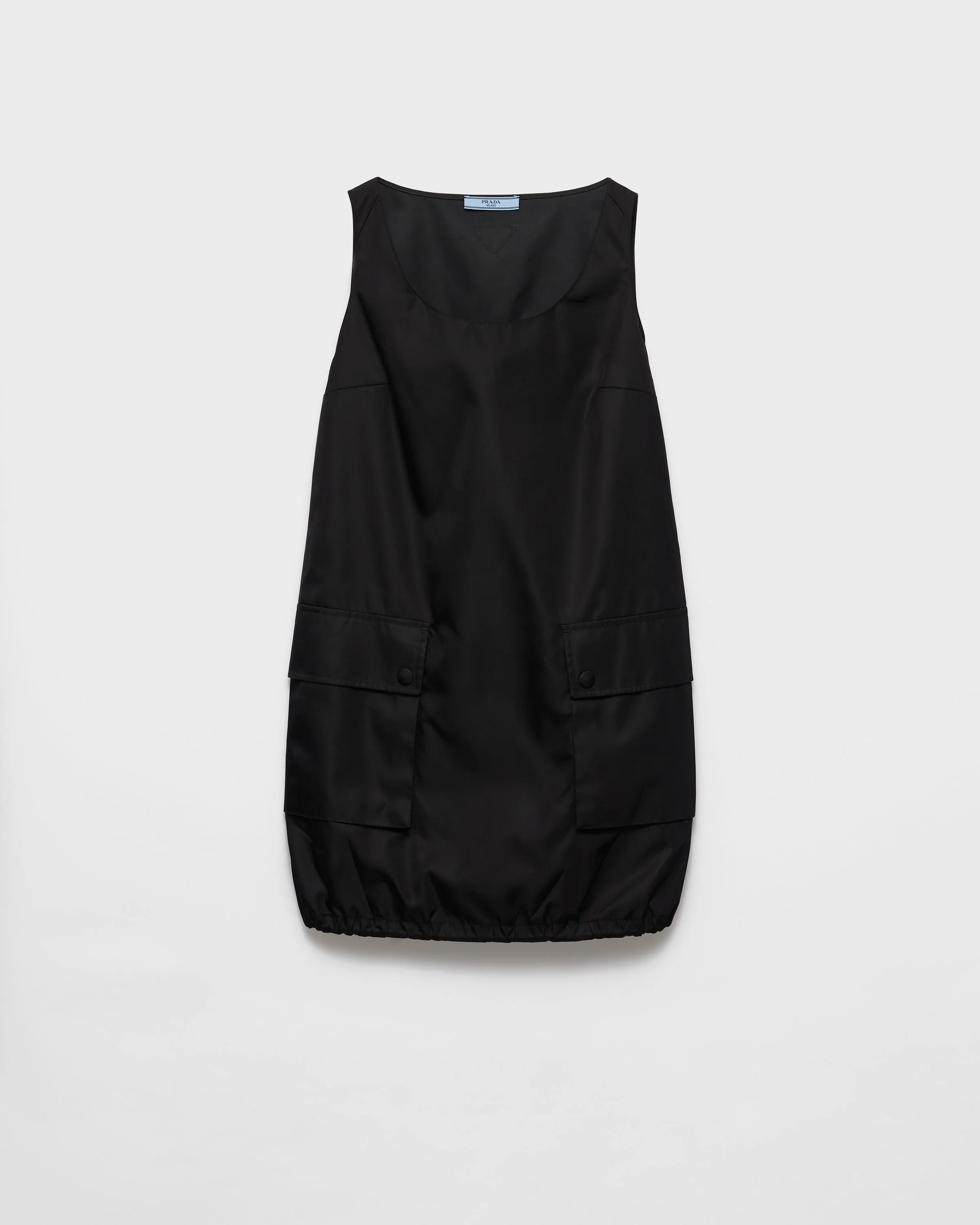 Sleek lines and sporty details define this Re-Nylon mini-dress characterized by its simple silhouette and large utility pockets. For sustainable care to preserve the product's characteristics and reduce microfiber shedding, we recommend not washing the item too often. Let the product air out after every use and have it dry cleaned at a specialized ecological dry cleaners. - Product code: 230732_1WQ8_F0002_S_OOO - Flared fit - Unlined garment - Scoop neck - Side zipper closure with hook - Conceptual triangle with enameled metal triangle logo - Utility pockets with flaps and buttons - Drawstring hem - Pressed garment - Imported Height: 83cm MATERIALS Main material: 100% recycled polyamide