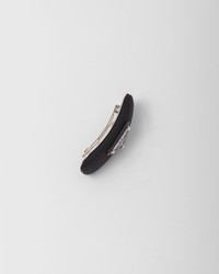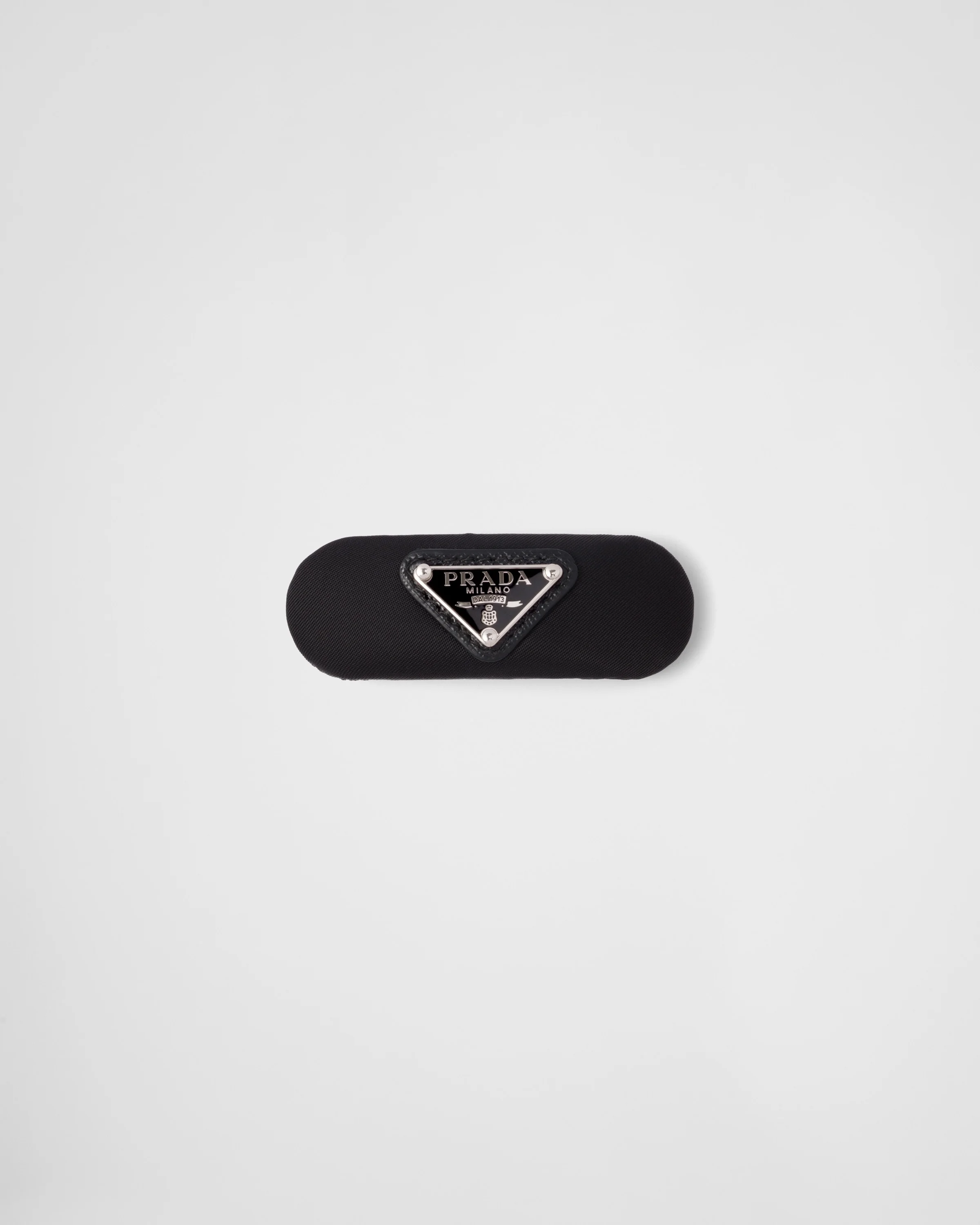 This hair clip, a sophisticated accessory reimagined with technical allure, is made of Re-Nylon: a regenerated nylon yarn obtained from recycled, purified plastic materials collected in the ocean, fishing nets, and textile fibers. For sustainable care to preserve the product's characteristics and reduce microfiber shedding, we recommend not washing the item too often. Let the product air out after every use and have it dry cleaned at a specialized ecological dry cleaners. - Product code: 1IF129_2DMI_F0002 - Clip closure - Enameled metal triangle logo - Imported Height: 2.4cm Width: 7cm MATERIALS Main material: Recycled polyamide