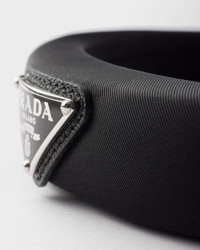This sleek and iconic Re-Nylon headband is decorated with the enameled metal triangle logo. For sustainable care to preserve the product's characteristics and reduce microfiber shedding, we recommend not washing the item too often. Let the product air out after every use and have it dry cleaned at a specialized ecological dry cleaners. - Product code: 1IH080_2DMI_F0002 - Enameled metal triangle logo - Imported Height: 2.5cm MATERIALS Main material: Recycled polyamide
