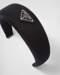 This oversized puffy headband, a sophisticated and emblematic accessory of Prada collections, is made of Re-Nylon: regenerated nylon yarn (ECONYL®)produced from recycled, purified plastic trash collected in the ocean, fishing nets and textile waste fibers. For sustainable care to preserve the product's characteristics and reduce microfiber shedding, we recommend not washing the item too often. Let the product air out after every use and have it dry cleaned at a specialized ecological dry cleaners. - Product code: 1IH016_2DMI_F0002 - Enameled metal triangle logo - Imported Width: 6.5cm MATERIALS Main material: Recycled polyamide