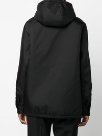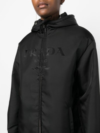 Re-Nylon hooded jacket ECONYL® is a regenerated-nylon yarn that can be recycled an indefinite number of times without affecting the quality of the material. The partnership between Prada and textile yarn producer Aquafil has resulted in technical pieces such as this Re-Nylon hooded jacket - a lightweight design featuring a drawstring hem and tonal jacquard logo lettering at the front. Highlights - Black - Recycled nylon - Jacquard logo motif - Classic hood - Long sleeves - Buttoned cuffs - Front two-way zip fastening - Two side slit pockets - Drawstring hem Composition Outer: Recycled Polyamide 100% Lining: Recycled Polyamide 100%, Polyester 55%, Recycled Polyester 45% SIZE & FIT Model measurements Height 5 ft 11 in(1.8 m) Bust/Chest 31.49 in(80 cm) Hips 36.61 in(93 cm) Waist 24.4 in(62 cm) FittingInformation This piece fits true to size. We recommend you get your regular size Cut for a loose fit Made with a mid-weight non-stretch fabric