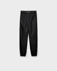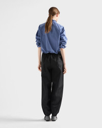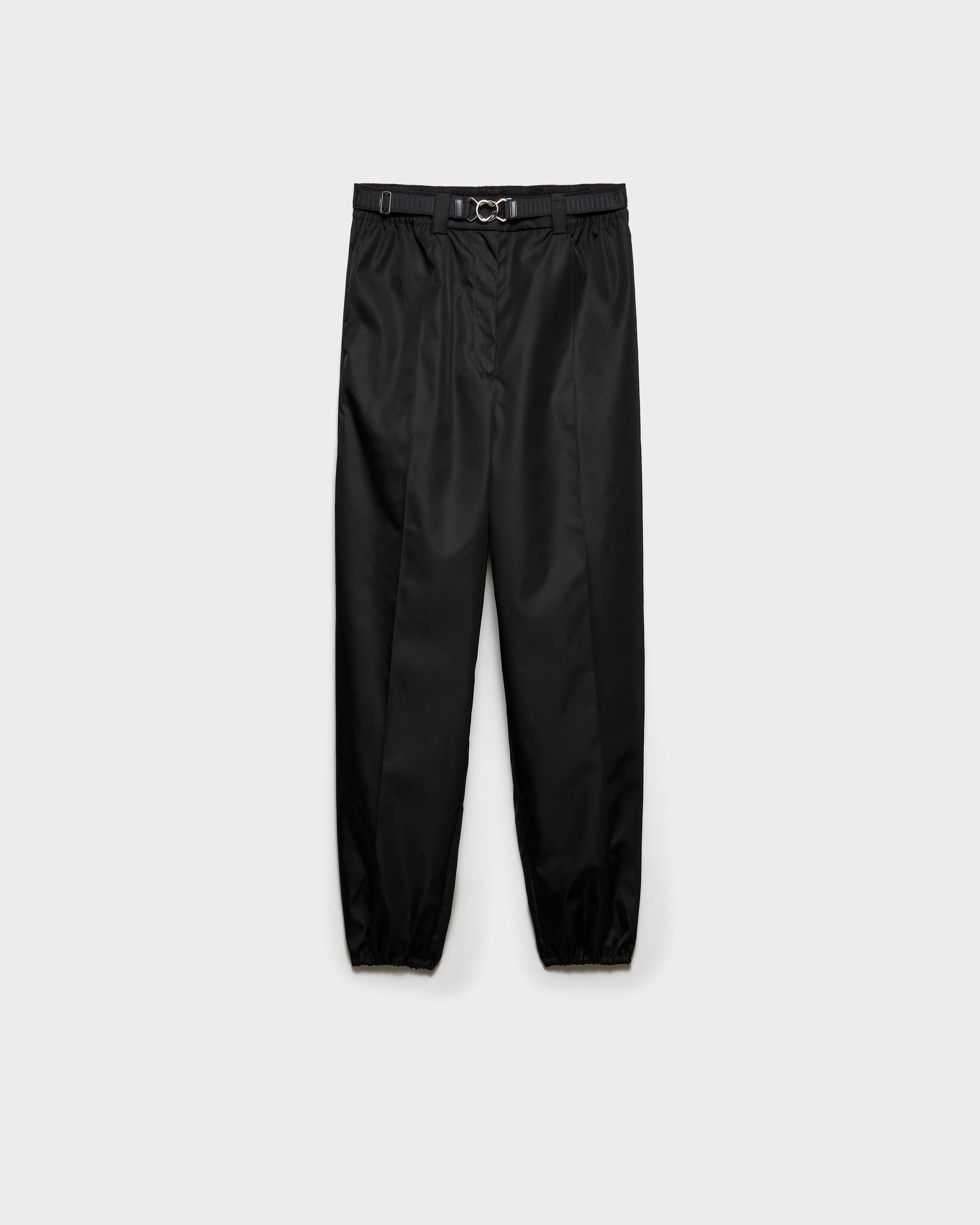 These joggers are made of Re-Nylon, an evolution of Prada's emblematic nylon fabric obtained from regenerated plastic materials collected in the ocean. The triangle logo adds its signature to the sporty, contemporary garment. For sustainable care to preserve the product's characteristics and reduce microfiber shedding, we recommend not washing the item too often. Let the product air out after every use and have it dry cleaned at a specialized ecological dry cleaners. - Product code: 22H939_1WQ8_F0002_S_OOO - Jogger silhouette - Unlined - Hidden zipper fly with hook - Side pockets - Elasticized cuff - Enameled metal triangle logo - Elasticized drawstring waist - Back patch pocket - Belt loops - Imported - The model is 178 cm tall and wears a size 38 Height: 100cm MATERIALS Main material: 100% recycled polyamide
