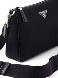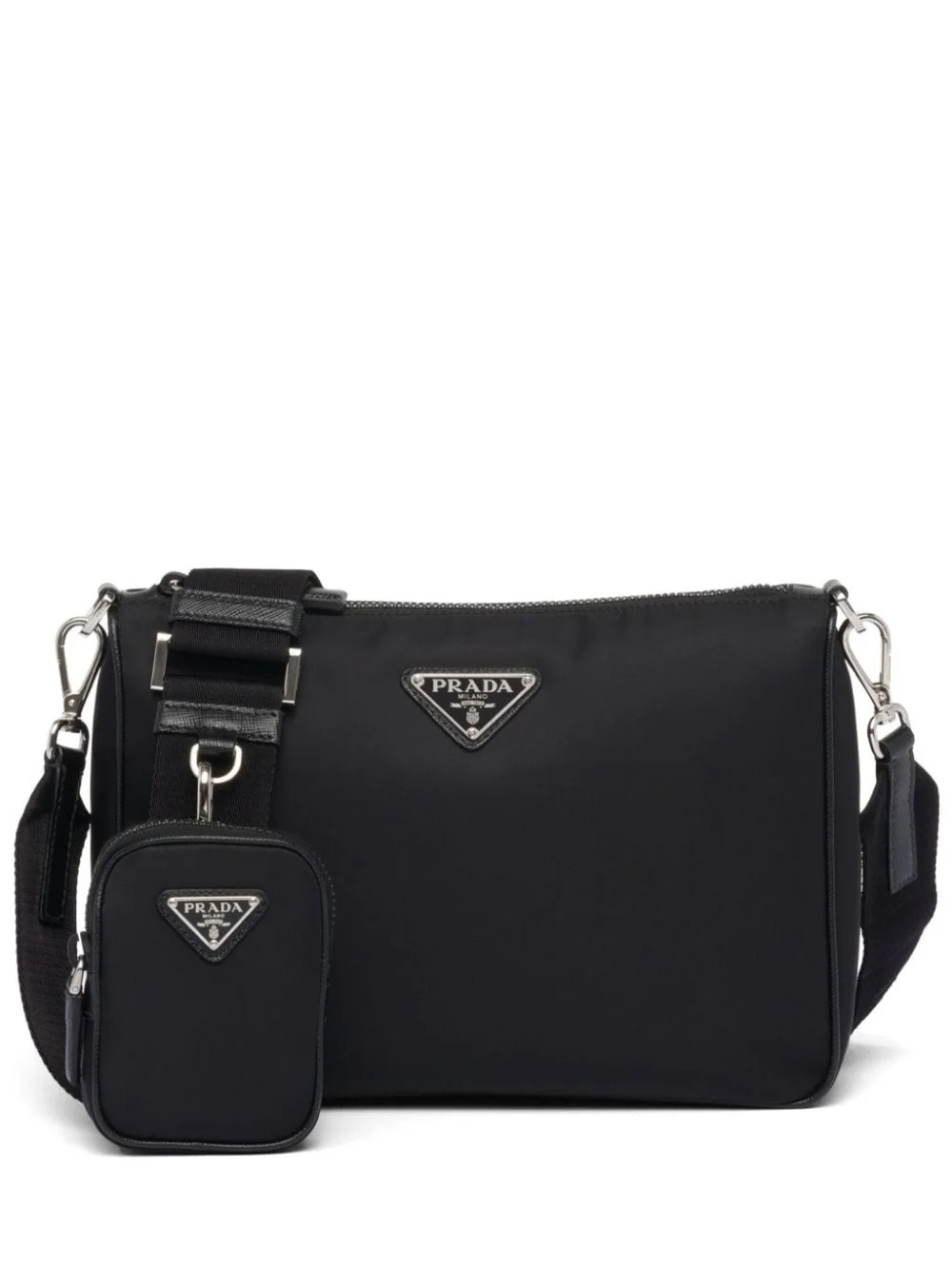 Re-Nylon messenger bag A renowned Prada design, the Re-Nylon messenger bag combines a minimal design with the refined enamel triangle logo. A signature brand detail, the removable pouch over the shoulder strap adds a contemporary completion. Highlights - Black - Recycled nylon - Enamel triangle logo - Silver-tone hardware - Adjustable detachable shoulder strap - Detachable coin purse - Top zip fastening Composition Outer: Leather 100%, Recycled Nylon 100% SIZE & FIT Measurement DEPTH 2.75 in(7 cm) HEIGHT 6.69 in(17 cm) STRAP 26.37 in(67 cm) WIDTH 2.36 in(6 cm)