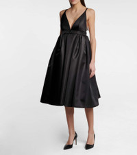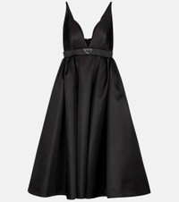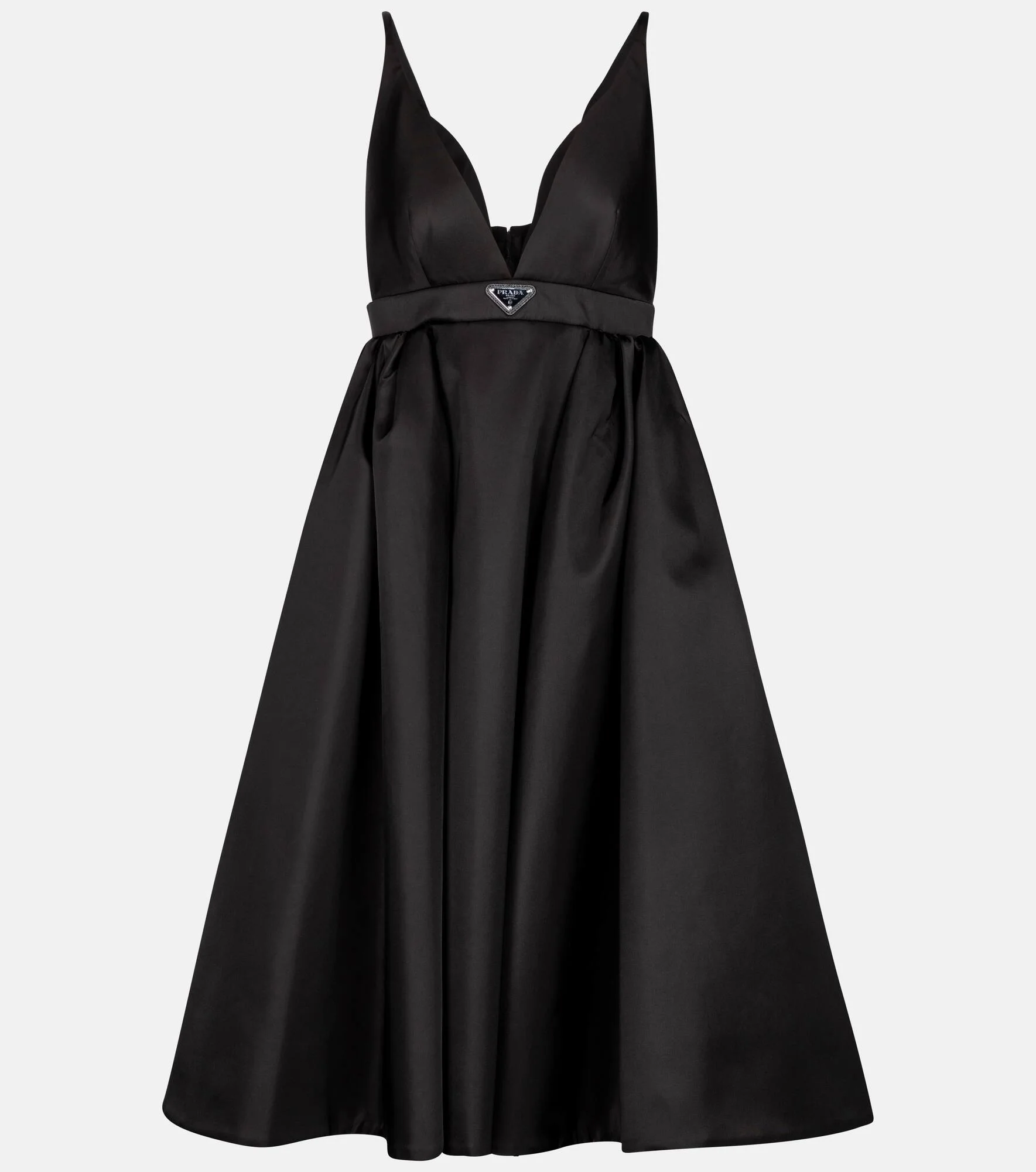 For a showstopping LBD, look no further than this smooth silk-lined Re-Nylon dress from Prada. This elegant plunge-neck design is cinched with a triangular logo plaque belt, and flares from an empire-line waist with a voluminous circle skirt. Wear yours with Derby shoes to nod to the label's first nylon-infiltrated ready-to-wear collection. Product Details - Lining: 100% silk, fully lined - Details: 100% calf leather - Made in Italy - Designer color name: Black - Material: 100% polyamide - Closure: zipped back, hook fastening - Care instructions: dry clean - Item number: P00528222 Size & Fit - True to size - Low back - Designed for a loose fit - The model seen in the picture is 178cm-5'10" and wearing a size IT 40