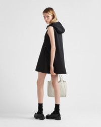Sporty, minimalist lines characterize this mini-dress with modern allure. Prada mixes different stylistic codes, creating designs with an innovative, modern character. This garment made of Re-Nylon stands out for the hood with drawstring and intarsia logo that gives it a sporty look. For sustainable care to preserve the product's characteristics and reduce microfiber shedding, we recommend not washing the item too often. Let the product air out after every use and have it dry cleaned at a specialized ecological dry cleaners. - Product code: 230691_1WQ8_F0002_S_231 - A-line silhouette - Lined garment - Front zipper closure - Enameled metal triangle logo - Welt zipper pockets - Hood with drawstring - Fabric tabs - Imported - The model is 178 cm tall and wears a size 38 Height: 82cm MATERIALS Main material: 100% recycled polyamide