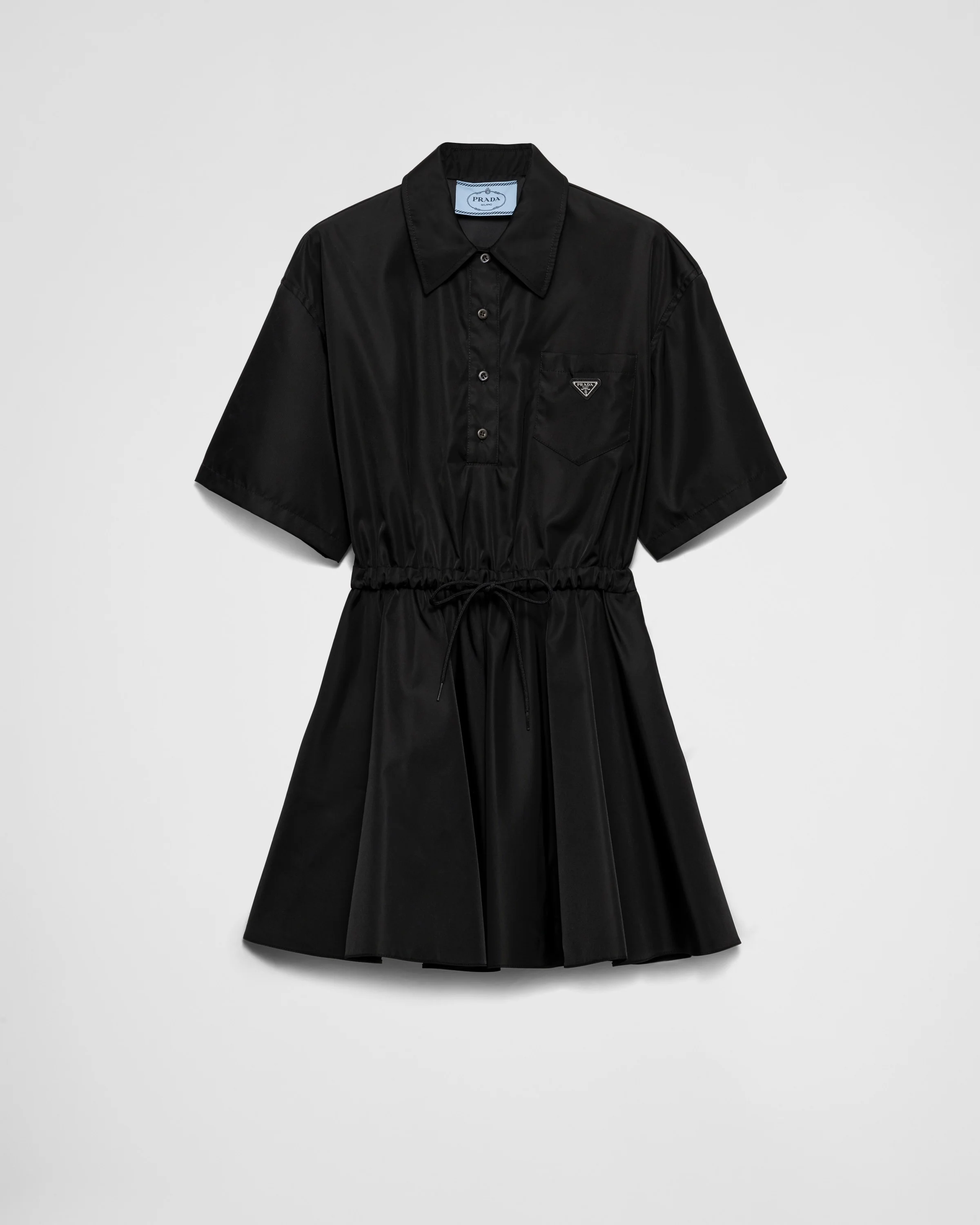 The functional character of Re-Nylon introduces the play of duality and contrasts that define this flared mini-dress. The triangle logo completes the style with sporty details, a synthesis of the distinctive codes of the Prada aesthetic. For sustainable care to preserve the product's characteristics and reduce microfiber shedding, we recommend not washing the item too often. Let the product air out after every use and have it dry cleaned at a specialized ecological dry cleaners. - Product code: 23X731_1WQ8_F0002_S_OOO - Godet fit - Unlined - Shirt collar - Front button closure - Inseam pockets - Conceptual logo with enameled metal triangle - Drawstring waist - Small patch pocket on the chest - Imported - The model is 179 cm tall and wears a size 38 Height: 85cm MATERIALS Main material: 100% recycled polyamide