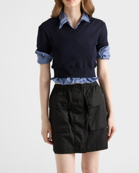 This Re-Nylon skirt with a sleek design is defined by its large utility pockets. The garment with contemporary, hybrid style is decorated with the emblematic enameled metal triangle logo. For sustainable care to preserve the product's characteristics and reduce microfiber shedding, we recommend not washing the item too often. Let the product air out after every use and have it dry cleaned at a specialized ecological dry cleaners. - 商品货号: 21H002_1WQ8_F0002_S_OOO - Unlined garment - Zipper and button closure - Elasticized waist - Conceptual triangle and enameled metal triangle logo - Pleated utility pockets with buttons - Pressed garment - 产品标签信息 - The model is 176 cm tall and wears a size 38 高度: 42cm MATERIALS 主要材质: 100% recycled polyamide