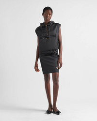 The pencil skirt is reinterpreted with innovative details and light volumes that give contemporary allure to the classic silhouette. Made of Re-Nylon, Prada's emblematic yarn made of regenerated nylon, the style combines sleek lines with refined, versatile elements. The hybrid garment is completed by the iconic signature of the enameled metal triangle logo. For sustainable care to preserve the product's characteristics and reduce microfiber shedding, we recommend not washing the item too often. Let the product air out after every use and have it dry cleaned at a specialized ecological dry cleaners. - Product code: 21H964_1WQ8_F0002_S_232 - Lined - Zipper closure - Enameled metal triangle logo - Logo-print leather zipper pull - Padded - Imported - The model is 180 cm tall and wears a size 38 Height: 55cm MATERIALS Main material: 100% recycled polyamide