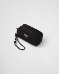 Characterized by a sleek line and emphasized by the iconic enameled metal triangle logo, this pouch is made of Prada's innovative Re-Nylon fabric produced from recycled plastic materials collected in the ocean. The accessory has an internal pocket with zipper closure. For sustainable care to preserve the product's characteristics and reduce microfiber shedding, we recommend not washing the item too often. Let the product air out after every use and have it dry cleaned at a specialized ecological dry cleaners. - Product code: 1NS175_R067_F0002 - Zipper closure - Enameled metal triangle logo - Removable leather wristlet - Re-Nylon lining with zipper pocket - Imported Height: 7cm Width: 15cm Length: 6cm MATERIALS Main material: Recycled polyamide
