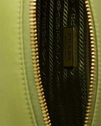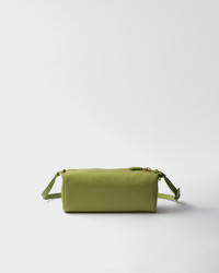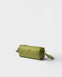 The refined design of this pouch sums up Prada codes with a sleek geometric silhouette made of Re-Nylon. An elegant slim leather handle completes the accessory decorated with the iconic triangle. For sustainable care to preserve the product's characteristics and reduce microfiber shedding, we recommend not washing the item too often. Let the product air out after every use and have it dry cleaned at a specialized ecological dry cleaners. - Product code: 1NE058_2C05_F0394 - Zipper closure - Enameled metal triangle logo - Adjustable leather handle - Logo-print Re-Nylon lining with zipper pocket - Imported Height: 9cm Width: 22cm Length: 7.5cm MATERIALS Main material: Recycled polyamide