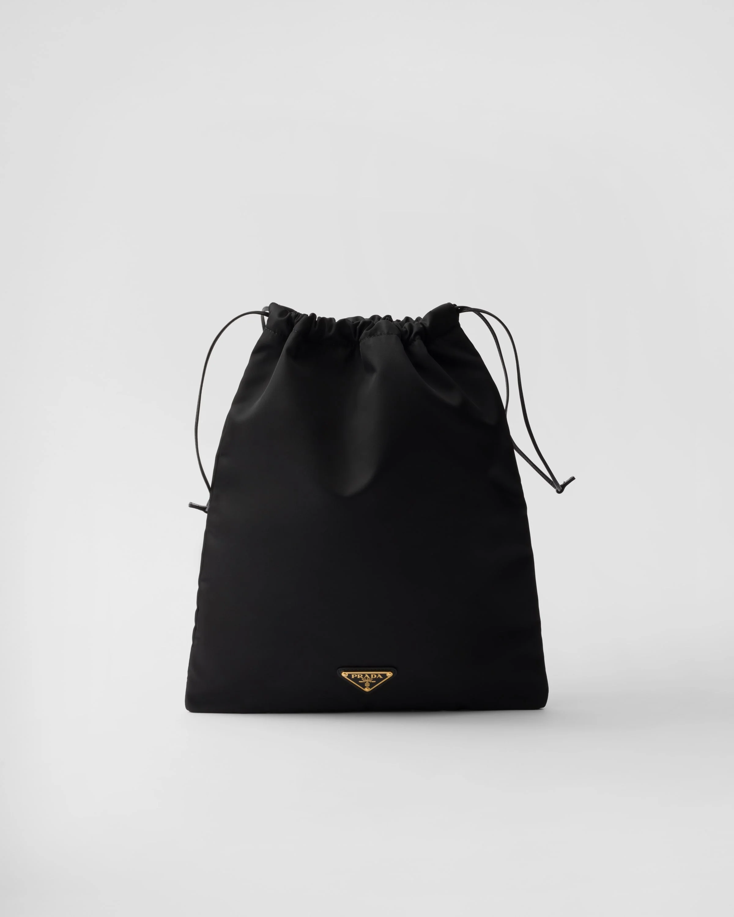 This drawstring pouch made of Prada's innovative Re-Nylon obtained from recycled plastic materials collected in the ocean stands out for its practical attitude highlighted by the leather lace. For sustainable care to preserve the product's characteristics and reduce microfiber shedding, we recommend not washing the item too often. Let the product air out after every use and have it dry cleaned at a specialized ecological dry cleaners. - Product code: 1NK001_2HG6_F0002 - Leather drawstring closure - Enameled metal triangle logo - Re-Nylon interior with patch pocket - Imported Height: 35cm Width: 29cm MATERIALS Main material: Recycled polyamide