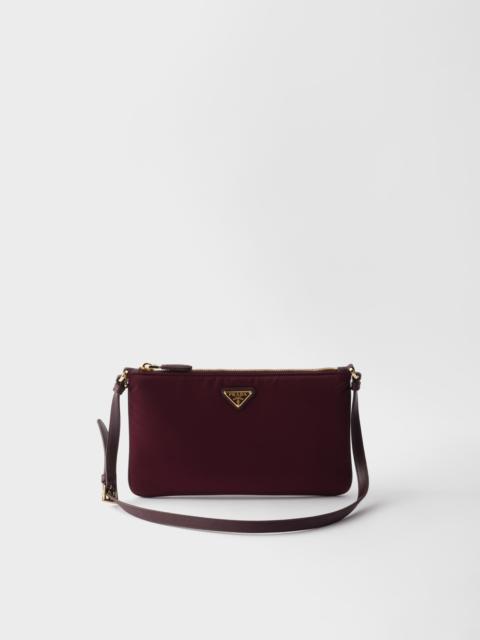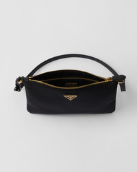 The refined design of this pouch sums up Prada codes with a minimalist silhouette made of Re-Nylon. An elegant slim leather handle completes the accessory decorated with the iconic triangle. For sustainable care to preserve the product's characteristics and reduce microfiber shedding, we recommend not washing the item too often. Let the product air out after every use and have it dry cleaned at a specialized ecological dry cleaners. - Product code: 1NE545_2C05_F0002 - Zipper closure - Enameled metal triangle logo - Adjustable leather handle - Logo-print Re-Nylon lining with zipper pocket - Imported Height: 14.5cm Width: 24.5cm MATERIALS Main material: Recycled polyamide