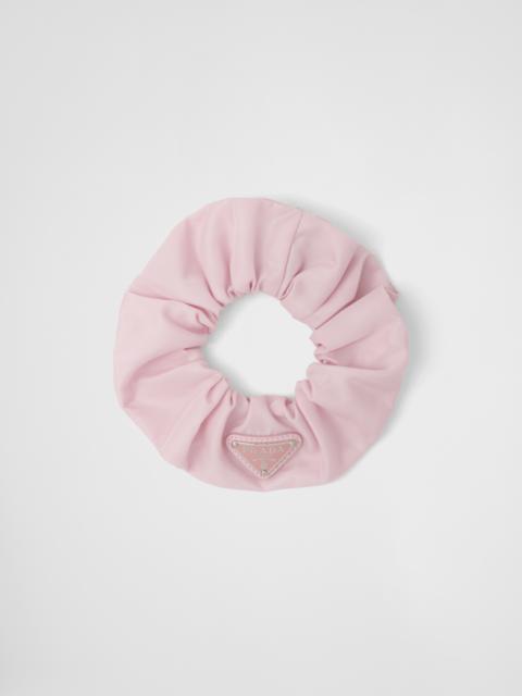This scrunchie, a sophisticated accessory reimagined with technical charm, is made of Re-Nylon: regenerated nylon yarn (ECONYL®)produced from recycled, purified plastic trash collected in the ocean, fishing nets and textile waste fibers. For sustainable care to preserve the product's characteristics and reduce microfiber shedding, we recommend not washing the item too often. Let the product air out after every use and have it dry cleaned at a specialized ecological dry cleaners. - Product code: 1IF015_2DMI_F0002 - Enameled metal triangle logo - Imported Height: 5cm MATERIALS Main material: Recycled polyamide