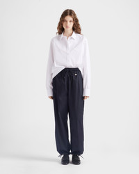 Techwear inspired this reinterpretation of joggers, presented in a light Re-Nylon design defined by contemporary, sporty details. For sustainable care to preserve the product's characteristics and reduce microfiber shedding, we recommend not washing the item too often. Let the product air out after every use and have it dry cleaned at a specialized ecological dry cleaners. - Product code: 22T940_1WQ8_F0SVF_S_OOO - Unlined garment - Drawstring waist - Angled front slash pockets - Back patch pocket - Drawstring hem - Enameled metal triangle logo - Pressed garment - Imported - The model is 178 cm tall and wears a size 38 Height: 107cm MATERIALS Main material: 100% recycled polyamide