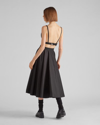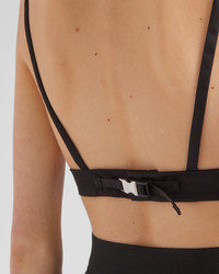 A uniform of urban beauty, this hybrid design combines an ultra-feminine silhouette and a technologically innovative industrial fabric: Re-Nylon produced from recycled, purified plastic trash collected in the ocean, fishing nets, and textile waste fibers. The top with plunging V-neck and slim fit is decorated with the enameled metal triangle logo on the front. For sustainable care to preserve the product's characteristics and reduce microfiber shedding, we recommend not washing the item too often. Let the product air out after every use and have it dry cleaned at a specialized ecological dry cleaners. - Codice articolo: 240706_1WQ8_F0002_S_212 - Slim fit - Enameled metal triangle logo - Lined garment - Hook closure - Accessory with logo-engraved buckle on the back - Importato - The model is 177 cm tall and wears a size 38 Altezza: 30cm MATERIALS Nylon
