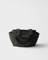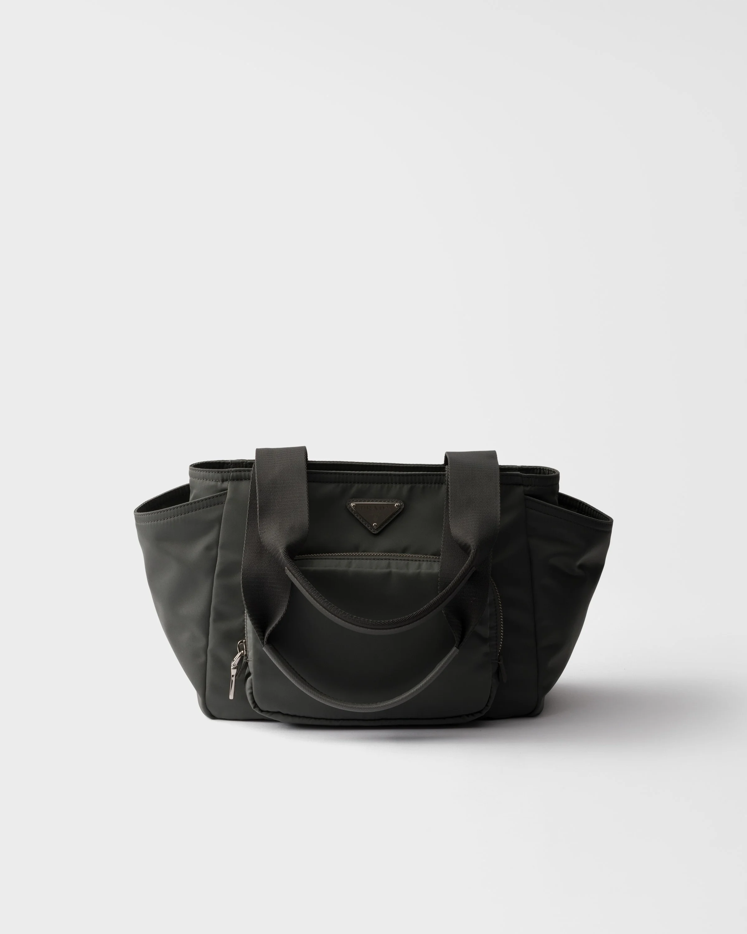 This Re-Nylon tote bag has a light, versatile, and functional design. The accessory with sleek lines has several internal and external pockets and is decorated with the iconic enameled metal triangle logo. For sustainable care to preserve the product's characteristics and reduce microfiber shedding, we recommend not washing the item too often. Let the product air out after every use and have it dry cleaned at a specialized ecological dry cleaners. - Product code: 1BG582_RV44_F0048_V_OOO - Woven tape handles, drop 22 cm - Detachable, adjustable woven logo tape shoulder strap, length: 100 cm. Maximum length 120 cm - Minimum length: 80 cm - Maximum drop 60 cm- Minimum drop 40 cm - Front zipper pocket - Open side pockets, back zipper pocket - Metal hardware - Enameled metal triangle logo on the front - Zipper closure - Logo-print Re-Nylon interior with three pockets, including one with zipper - With purse feet - Imported Height: 22cm Width: 26cm Length: 13cm MATERIALS Main material: Recycled polyamide