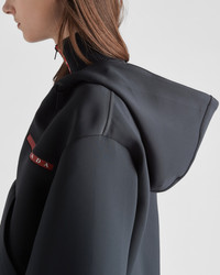 This sweatshirt with oversized volumes and a cropped cut has sporty allure that is emphasized by large patch pockets, wide sleeves, and a drawstring hem that accentuate its proportions. The garment made of recycled technical fabric has heat-sealed tape seams that favor impermeability. The emblematic Prada Linea Rossa logo stands out on the front. - Product code: 138558_1YUN_F0002_S_202 - Oversized fit - Long sleeves - With hood - Heat-sealed zipper closure on the front - Linea Rossa intarsia logo - Drawstring hood and hem - Patch pockets - Heat-sealed tape seams internally and externally - External left pocket with waxed zipper - Internal heat transfer label on the back and left front - Imported Height: 50cm MATERIALS Nylon