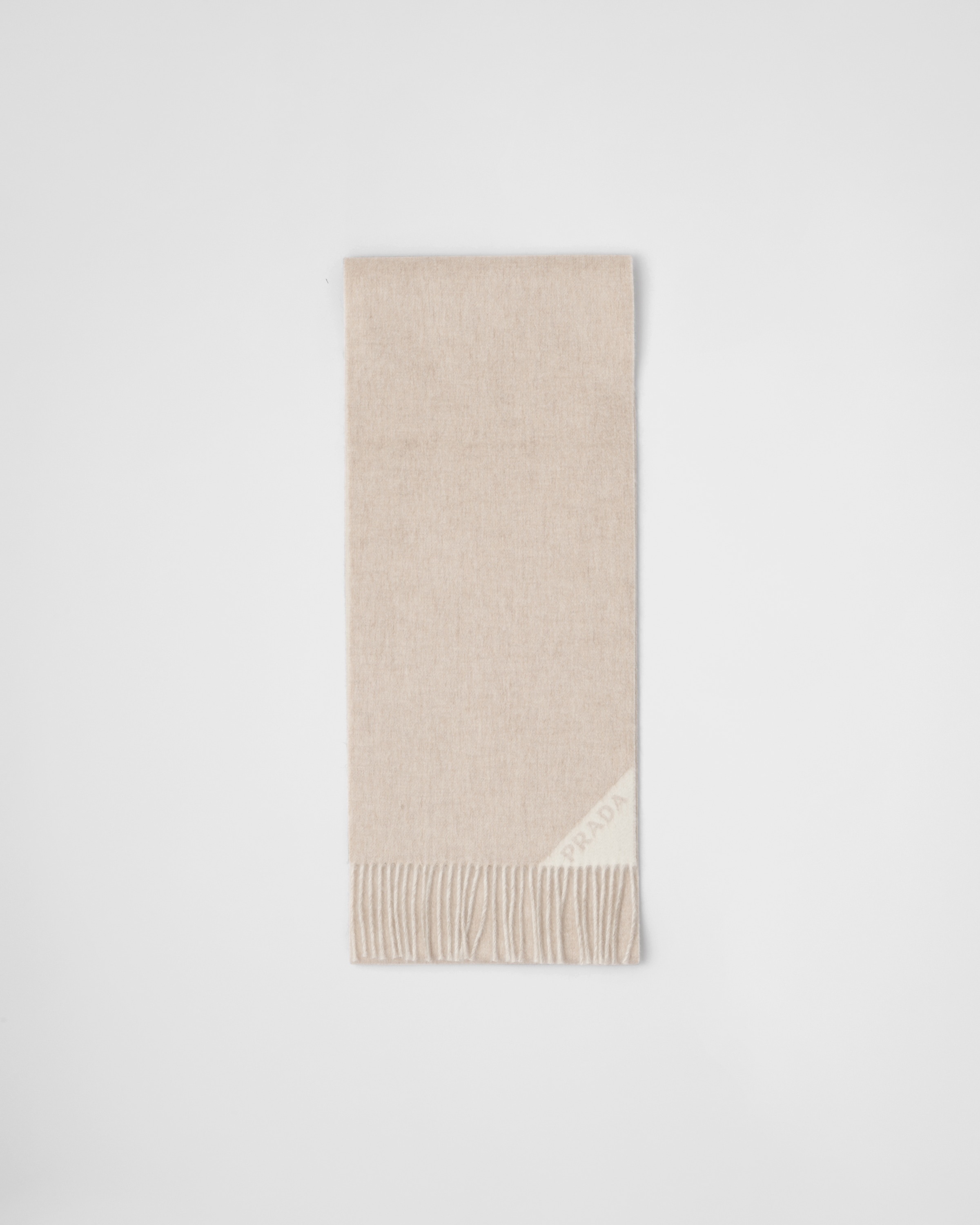 This sleek scarf is made of soft, warm cashmere with a reversible design, animated by contrasting colors. The jacquard logo, repeated on opposite corners of the scarf, adds a distinctive touch to the accessory. - 商品货号: 1FS055_2COO_F0X27 - Jacquard logo - Two-tone double face - Fringe on two sides - 100% cashmere - 高度: 180cm - 宽度: 28cm - 产品标签信息