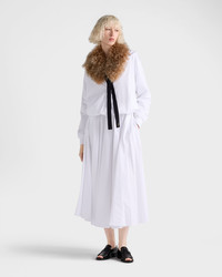 Prada's modernist elegance and sporty soul coexist in the design of this versatile circle skirt. The hybrid silhouette inspired by techwear is made of cotton jersey with a Re-Nylon interior. For sustainable care to preserve the product's characteristics and reduce microfiber shedding, we recommend not washing the item too often. Let the product air out after every use and have it dry cleaned at a specialized ecological dry cleaners. - Product code: 131110_17XE_F0009_S_OOO - Inseam pockets - Elasticized drawstring waist - Fabric triangle logo on the back - Full skirt - Reversible garment with lightweight Re-Nylon interior - Pressed garment - Imported - The model is 180 cm tall and wears a size 38 Height: 48cm MATERIALS Main material: 100% cotton