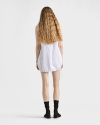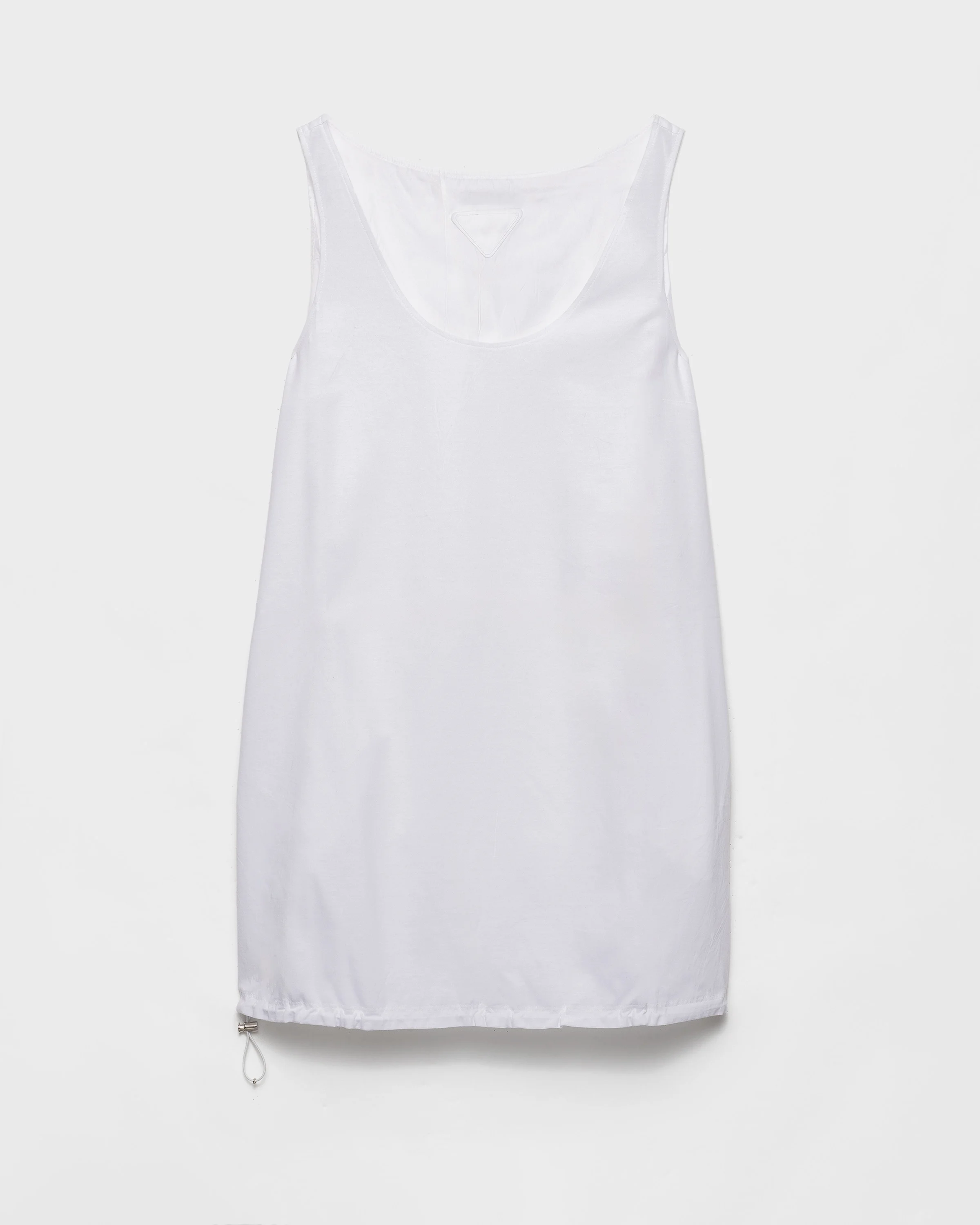 Prada's modernist elegance and sporty soul coexist in the design of this versatile mini-dress. The reversible style made of cotton jersey with a Re-Nylon interior is completed by the drawstring hem that underlines its soft, light volumes. - Product code: 133319_17XE_F0009_S_OOO - Flared fit - Sleeveless - Hem with elasticized drawstring - Fabric triangle logo on the back - Pressed garment - Reversible garment with lightweight Re-Nylon interior - Imported - The model is 180 cm tall and wears a size 38 Height: 48cm MATERIALS Main material: 100% cotton