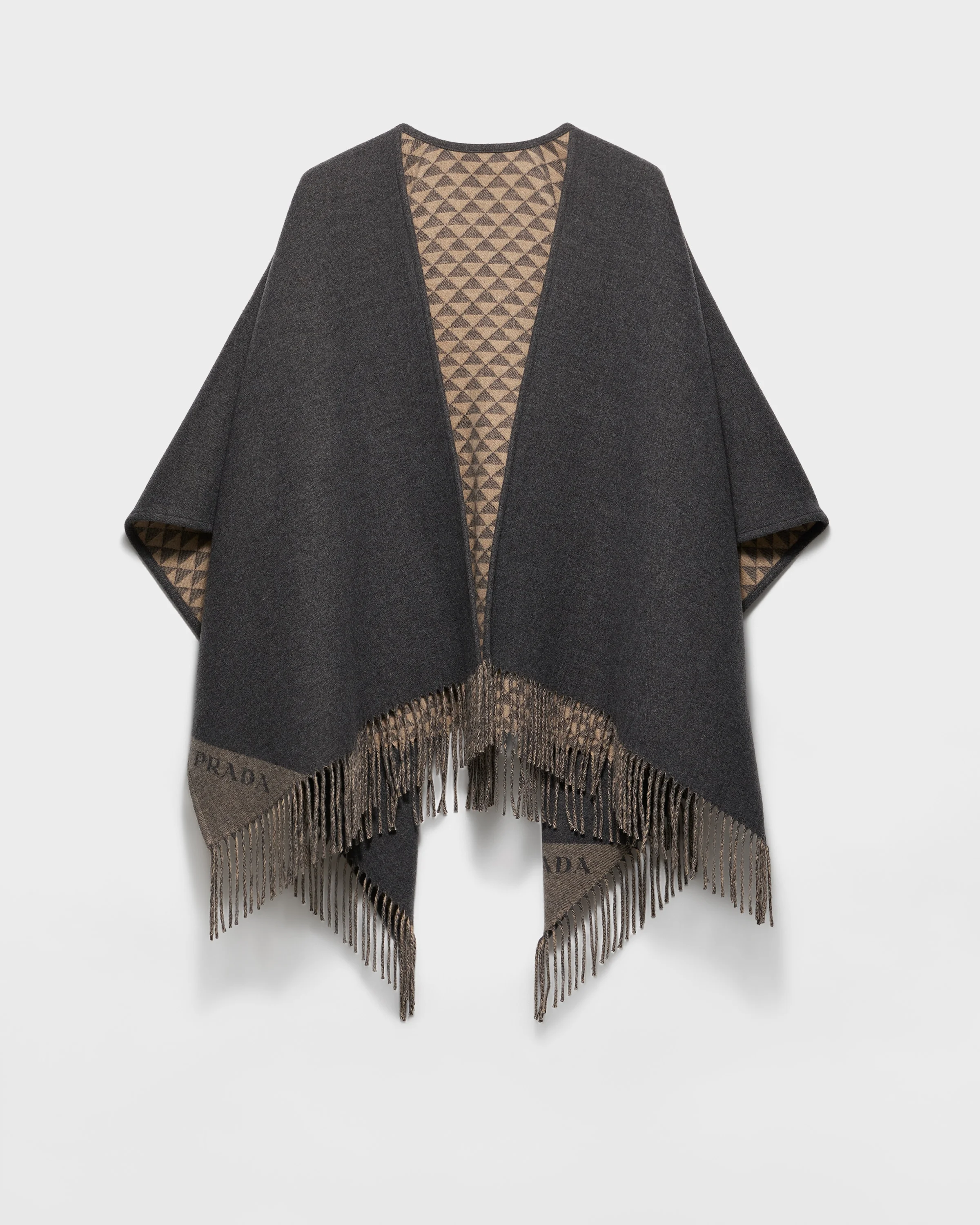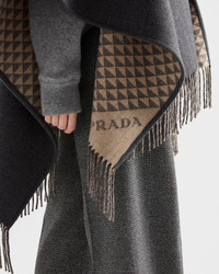 A fine blend of wool and cashmere gives this poncho a soft feel and refined allure. The reversible design is enriched by a geometric jacquard motif that celebrates Prada's iconic triangle logo. - Product code: 1FS113_2CON_F0Q29 - Jacquard logo - Jacquard knit - Fringe on two sides - 90% wool 10% cashmere - Imported MATERIALS Main material: Recycled polyester