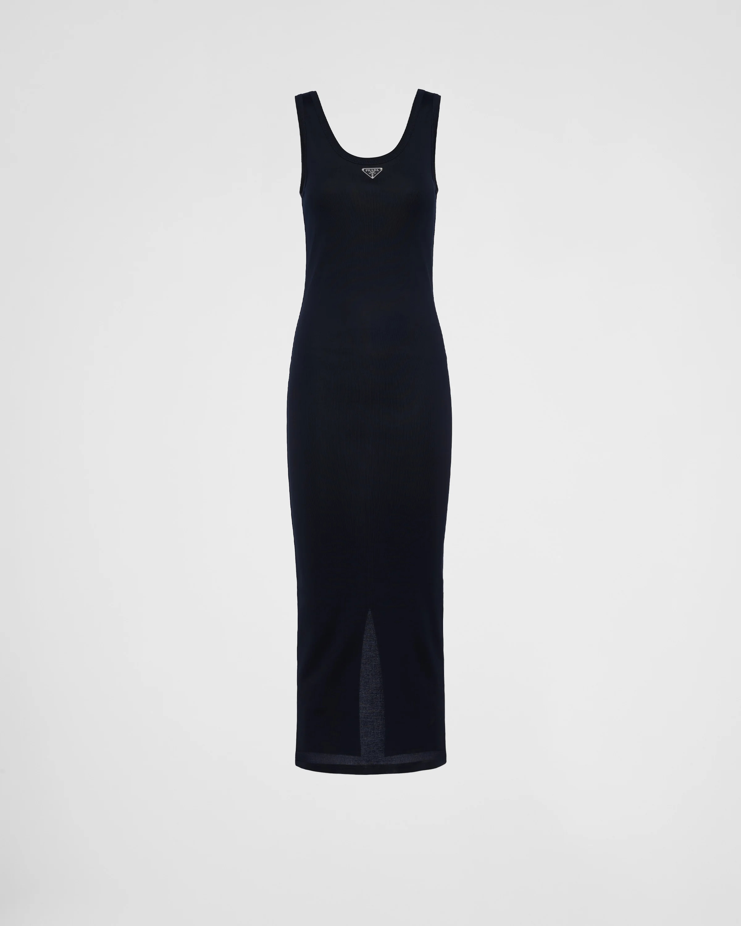 This ribbed cotton dress has a sleek silhouette with a slim fit. The casual style characterized by a back slit is embellished with an enameled metal triangle logo. - Product code: 33591_14L0_F0008_S_OOO - Slim fit - Scoop neck - Enameled metal triangle logo - Imported - The model is 178 cm tall and wears a size 38 Height: 130cm MATERIALS Main material: 100% cotton