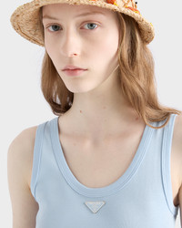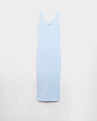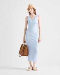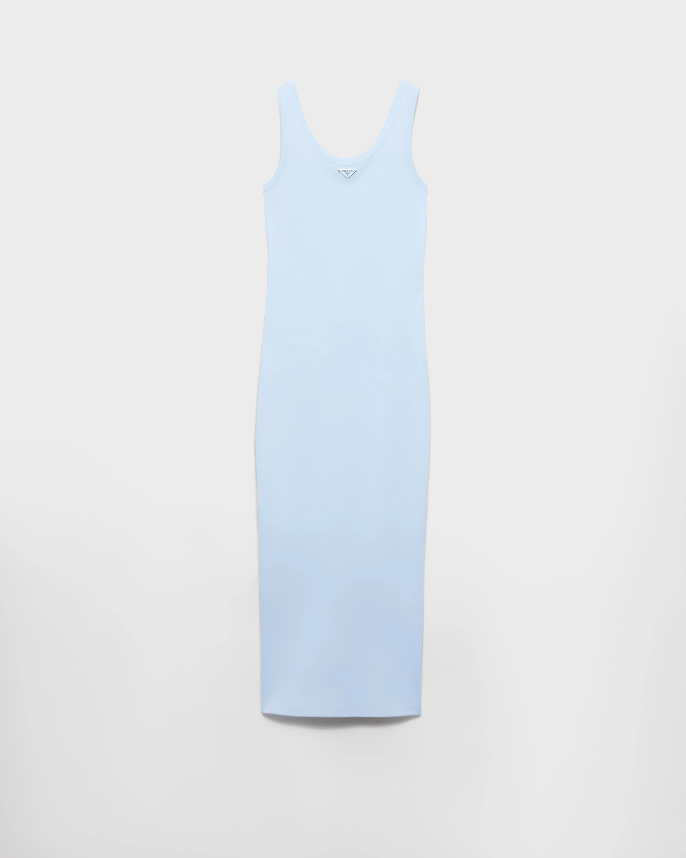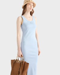 This ribbed cotton dress has a sleek silhouette with a slim fit. The casual style characterized by a back slit is embellished with an enameled metal triangle logo. - Product code: 33591_14L0_F0012_S_OOO - Slim fit - Scoop neck - Enameled metal triangle logo - Imported - The model is 176 cm tall and wears a size 38 Height: 130cm MATERIALS Main material: 100% cotton