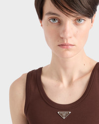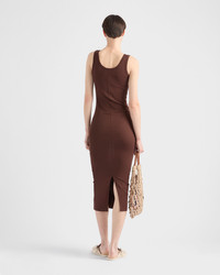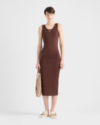 This ribbed cotton dress has a sleek silhouette with a slim fit. The casual style characterized by a back slit is embellished with an enameled metal triangle logo. - Product code: 33591_14L0_F0324_S_OOO - Slim fit - Scoop neck - Enameled metal triangle logo - Imported - The model is 181 cm tall and wears a size 38 Height: 130cm MATERIALS Main material: 100% cotton