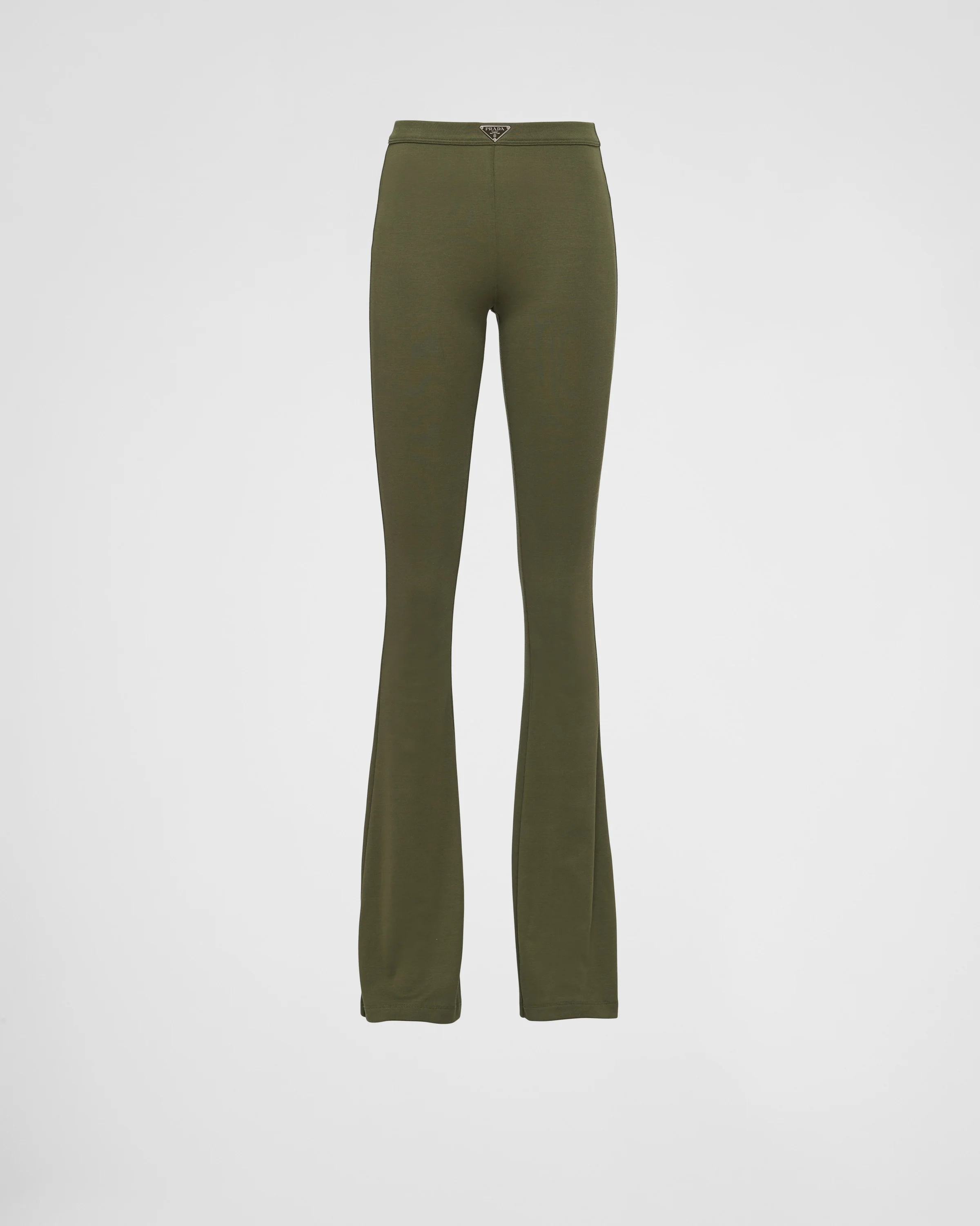 These cotton pants characterized by the ribbed knit has a skinny fit that culminates in a wide flared hem. The enameled metal triangle logo embellishes the casual style with an iconic touch. - Product code: 32154_14L0_F0334_S_OOO - Flared leg - Enameled metal triangle logo - Elasticized waistband - Imported Height: 115cm MATERIALS Main material: 100% cotton