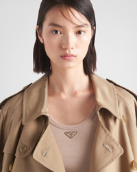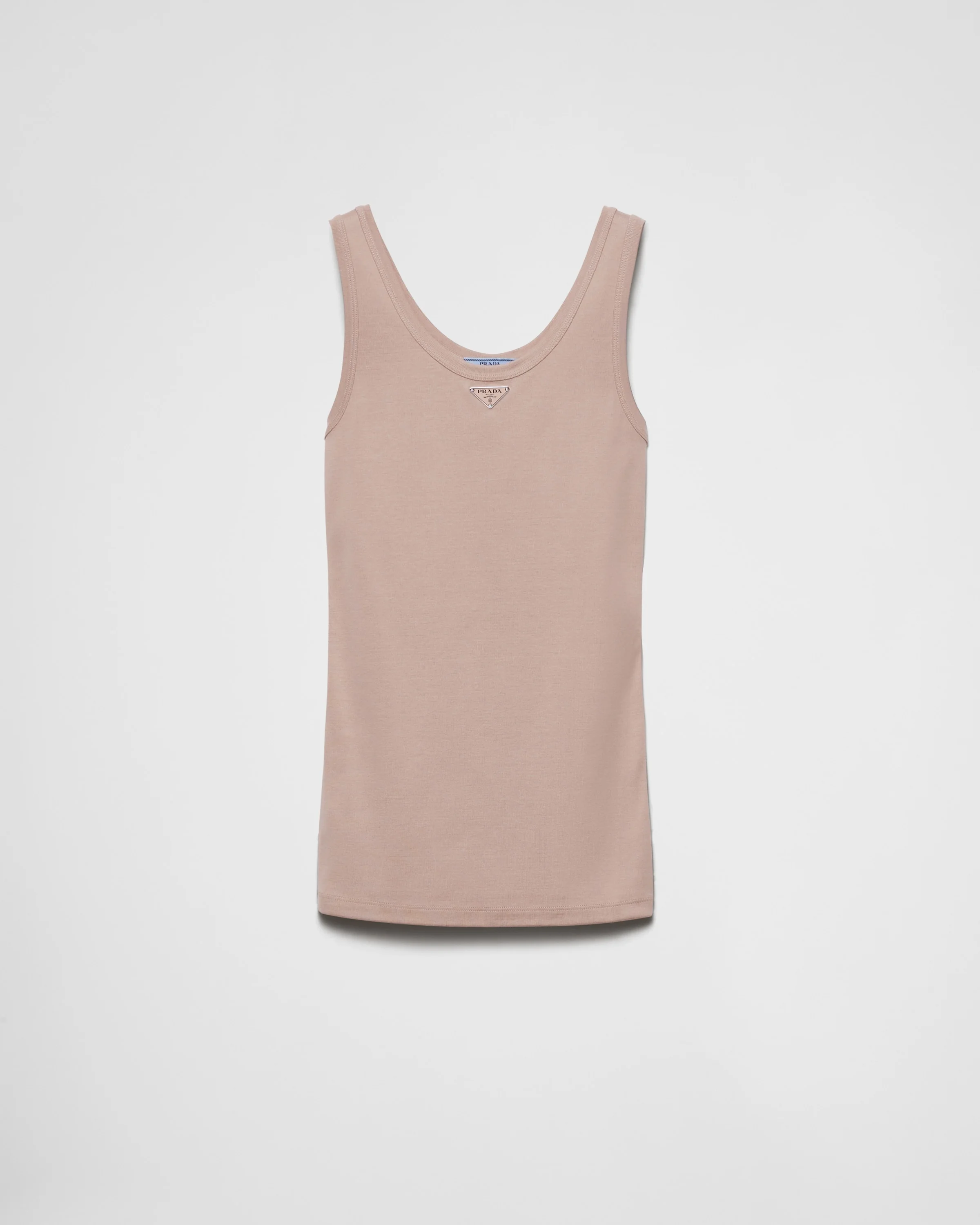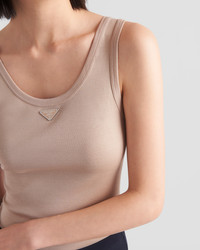 This ribbed knit cotton top is characterized by its skinny fit and embellished with the enameled metal triangle logo. - Product code: 39576L_14L0_F0241_S_OOO - Skinny fit - Scoop neck - Enameled metal triangle logo - Imported - The model is 179 cm tall and wears a size 38 Height: 67cm MATERIALS Main material: 100% cotton