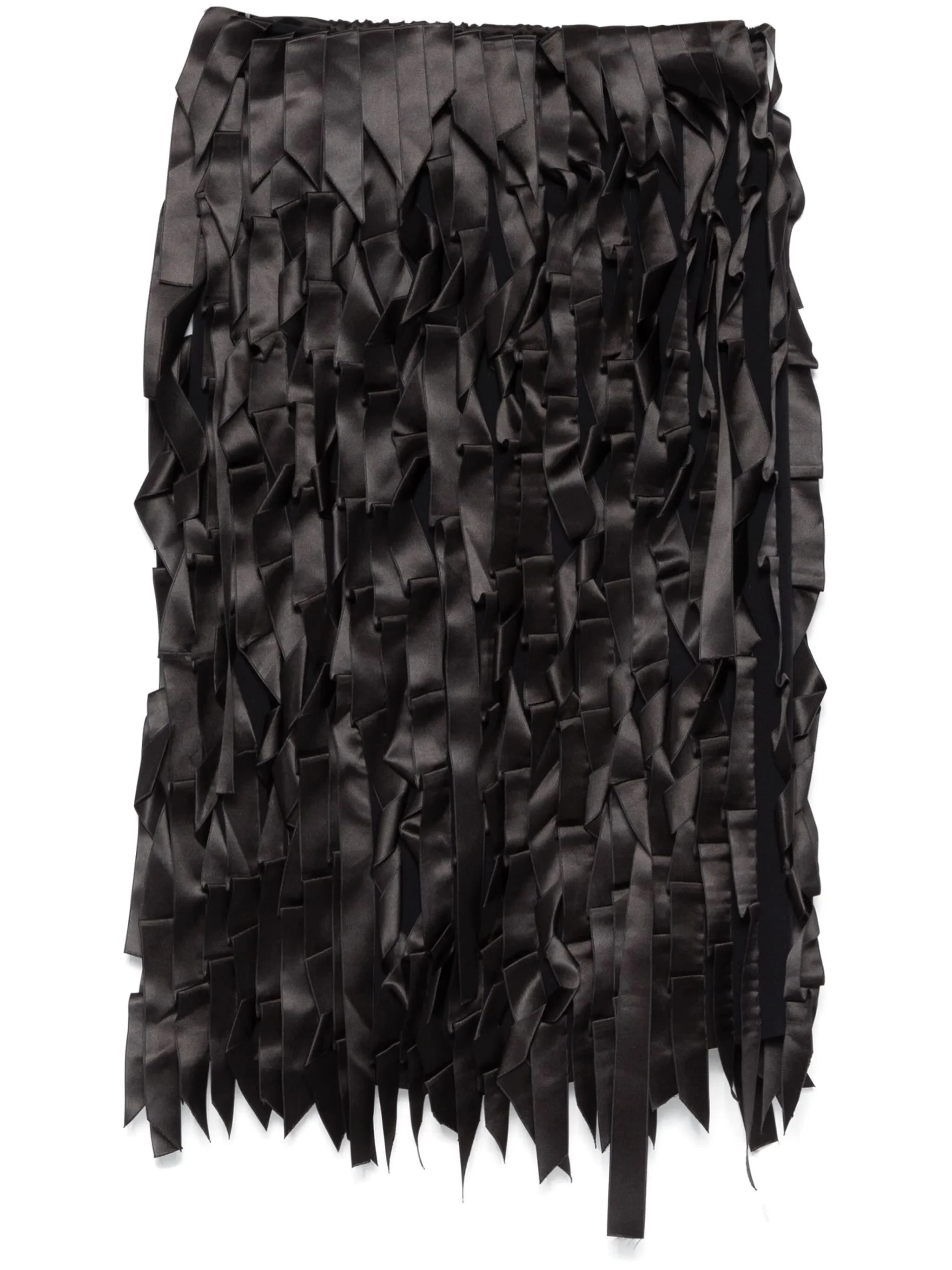 black crepe texture ribbon band embellishment side zip fastening rear elasticated waistband adjustable strap to the rear full lining asymmetric hem - Color: BLACK - Made in: Italy - Designer Style ID: P140YR S OOO 152E F0002 Composition and care Polyester: 100.0%, Acetate: 74.0%, Viscose: 26.0%