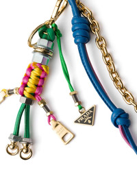 Robot bag charm Highlights - Green - Lambskin - Snap hook fastening - Enamel triangle logo - Keyring attachment - Chain-link detailing - Knot detailing Composition Steel 100%, Lambskin 100%, Polyester 100%