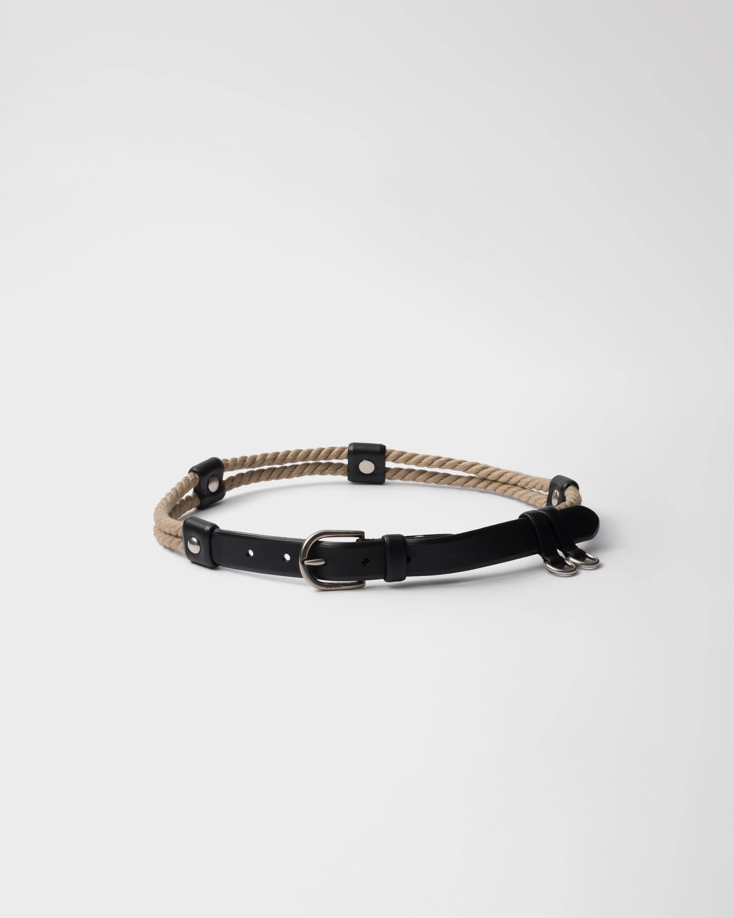Nautical style codes inspired this belt with a distinctive design made of cord and leather. The metal buckle, characterized by simple, curved lines, completes the sophisticated, hybrid accessory. - Product code: 1CS146_2HJK_F0002 - Metal buckle - Logo engraved on the buckle - Imported Height: 2.5cm MATERIALS Main material: Calfskin