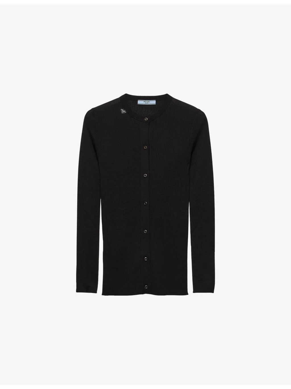 PRODUCT DETAILS - Prada wool cardigan - 100% virgin wool - Exposed button fastening at front - Slim fit, round neck, long sleeves, all-over ribbed and knitted - Specialist dry clean - True to size - Lightweight, slight stretch Ref: R04586404