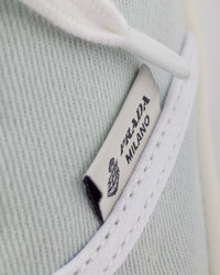 Lightweight fabric with trim in a contrasting shade characterizes these shoes for the new summer season. The distinctive, minimalist logo expresses authenticity and connection, embodying the harmonious strength of Prada elegance. - Product code: 1E402O_3LKE_F0012_F_030 - Upper with contrasting fabric trim - Fabric lining - Fabric logo label - Cotton laces - Rubber sole, 30 mm - Geometric tread - Removable fabric-covered insole - Imported MATERIALS Main material: Cotton
