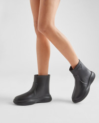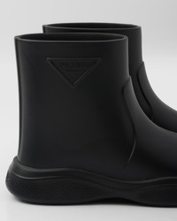 A modern spirit and innovative construction and choice of materials characterize these booties that reinterpret classic galoshes in a fun, contemporary way. Made of soft rubber to ensure extreme lightness and flexibility, the boot is decorated with the embossed triangle logo and has a comfortable leather-covered insole. - Product code: 1T859M_3LKD_F0002_F_025 - Embossed rubber triangle logo - 14 cm bootleg - 25 mm expanded rubber sole - Lenticular geometric tread MATERIALS Other Materials