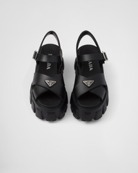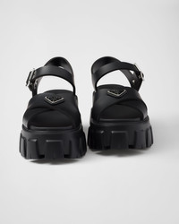 These rubber sandals with sporty touches and contemporary details are an emblem of Prada's unconventional and dual soul. The style characterized by the distinctive Monolith sole is completed by the iconic signature of the enameled metal triangle logo. - Product code: 1X382N_3LKK_F0002_F_055 - Upper with metal buckle - Enameled metal triangle logo - Rubber sole: 55 mm - Lug sole - Imported MATERIALS Main material: Ethyl vinyl acetate - eva