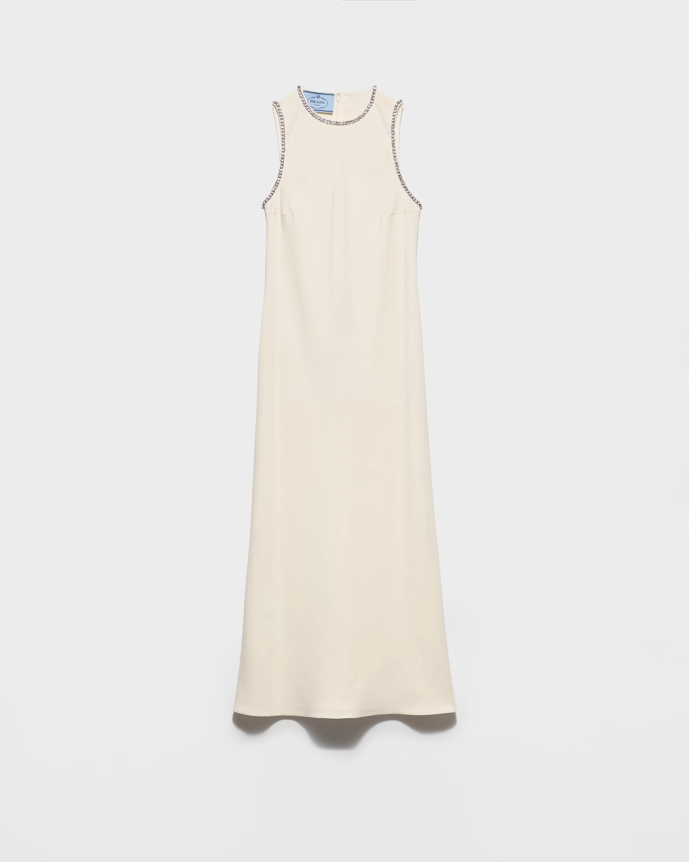 Pure, minimalist lines are enhanced by the fluidity of sable fabric. The round neckline and flared hem express modern elegance that favors lightness and sophistication. - Product code: P3O31R_1Y78_F0304_S_OOO - Sheath dress silhouette - Unlined garment - Round neck - Back zipper closure - Flared hem - Imported - The model is 178 cm tall and wears a size 38 Height: 125cm MATERIALS Main material: 74% acetate 26% viscose