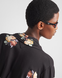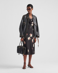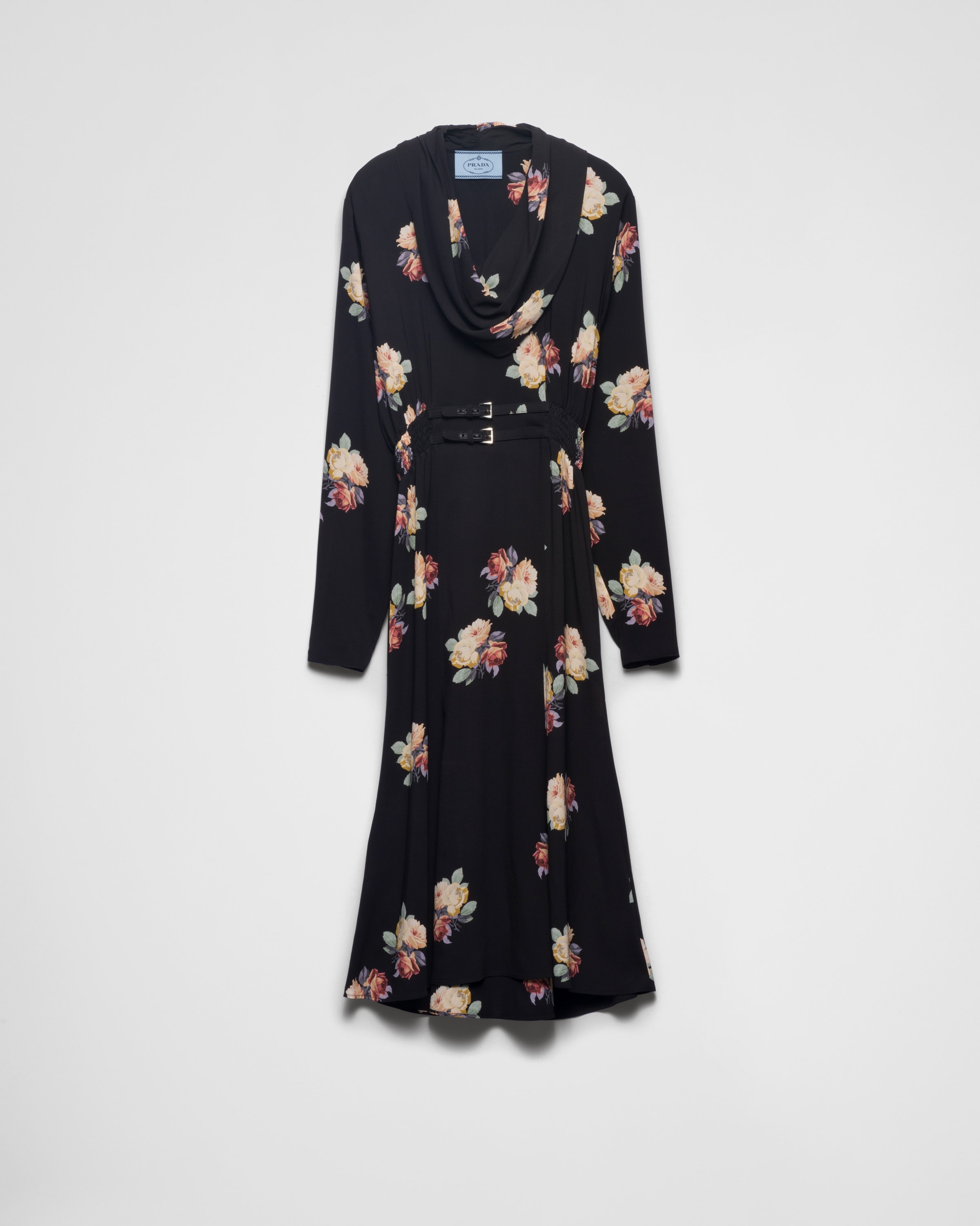 The elegant, vintage allure of this sablé dress is created through refined details, designed to enhance the silhouette with airy lines. A refined floral print enlivens the style, which is further embellished by a sophisticated shawl collar that highlights the fluid design. - Product code: P3N03R_15U1_F0002_S_OOO - Camelia print - Loose fit - Unlined - Shawl collar - Back-center zipper closure - Long sleeves - Flared hemline - Smocking at the waist - Height: 120cm - Imported MATERIALS Viscose