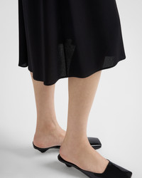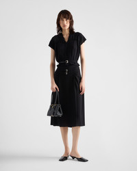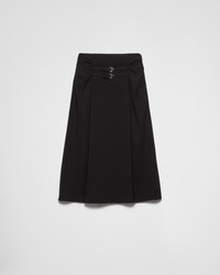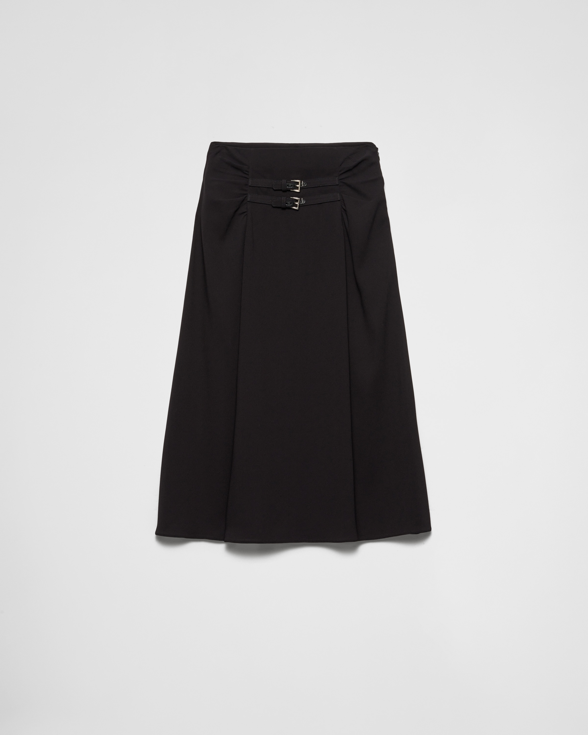 This midi skirt features a fluid silhouette with flared lines defined by an elegant back slit. Sleek, refined double straps embellish the garment with sophisticated charm. - Product code: P160KK_1ZY5_F0002_S_OOO - Flared fit - Unlined - Back slit - Side zipper closure with hook - Double straps with metal buckles on the front - Imported - The model is 180 cm tall and wears a size 38 Height: 70cm MATERIALS Viscose
