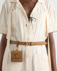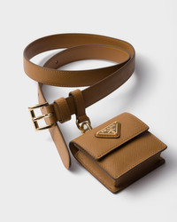 This refined and multifunctional belt in Saffiano leather features a sleek design enriched by a removable mini-pouch. The enameled metal triangle logo adds its signature touch to the accessory with contemporary elegance. - Product code: 1CC685_053_F03BH - With mini pouch - Metal buckle - Enameled metal triangle logo - Imported Height: 2.2cm MATERIALS Main material: Calfskin
