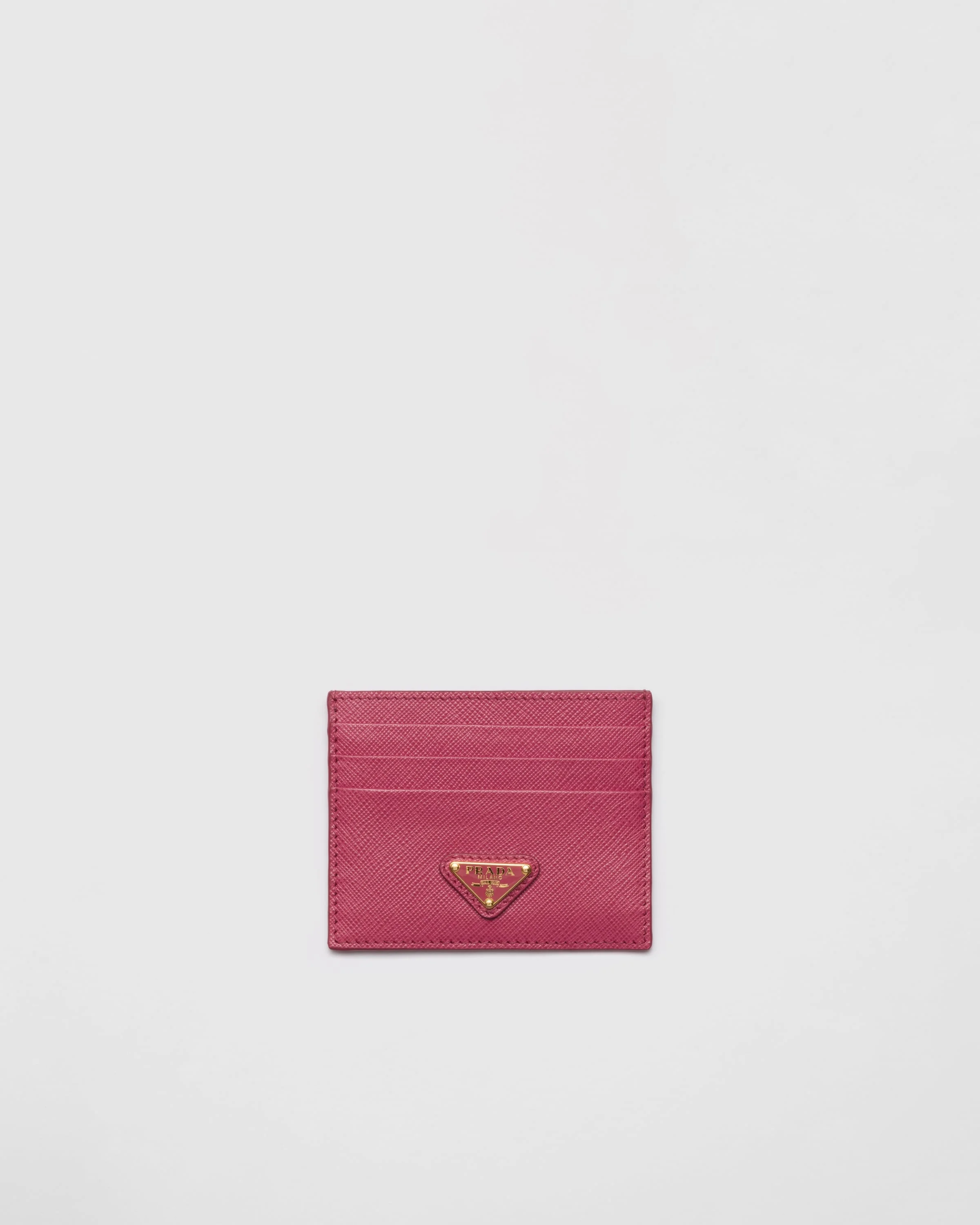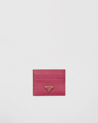 The unmistakable texture of Saffiano leather characterizes this sleek card holder. The accessory with six card slots is decorated with a tonal enameled metal triangle logo. - Product code: 1MC025_QHH_F0BQT - Enameled metal triangle logo - Six card slots - One inside pocket - Moire and Saffiano leather lining - Imported Height: 8cm Width: 10cm MATERIALS Main material: Calfskin