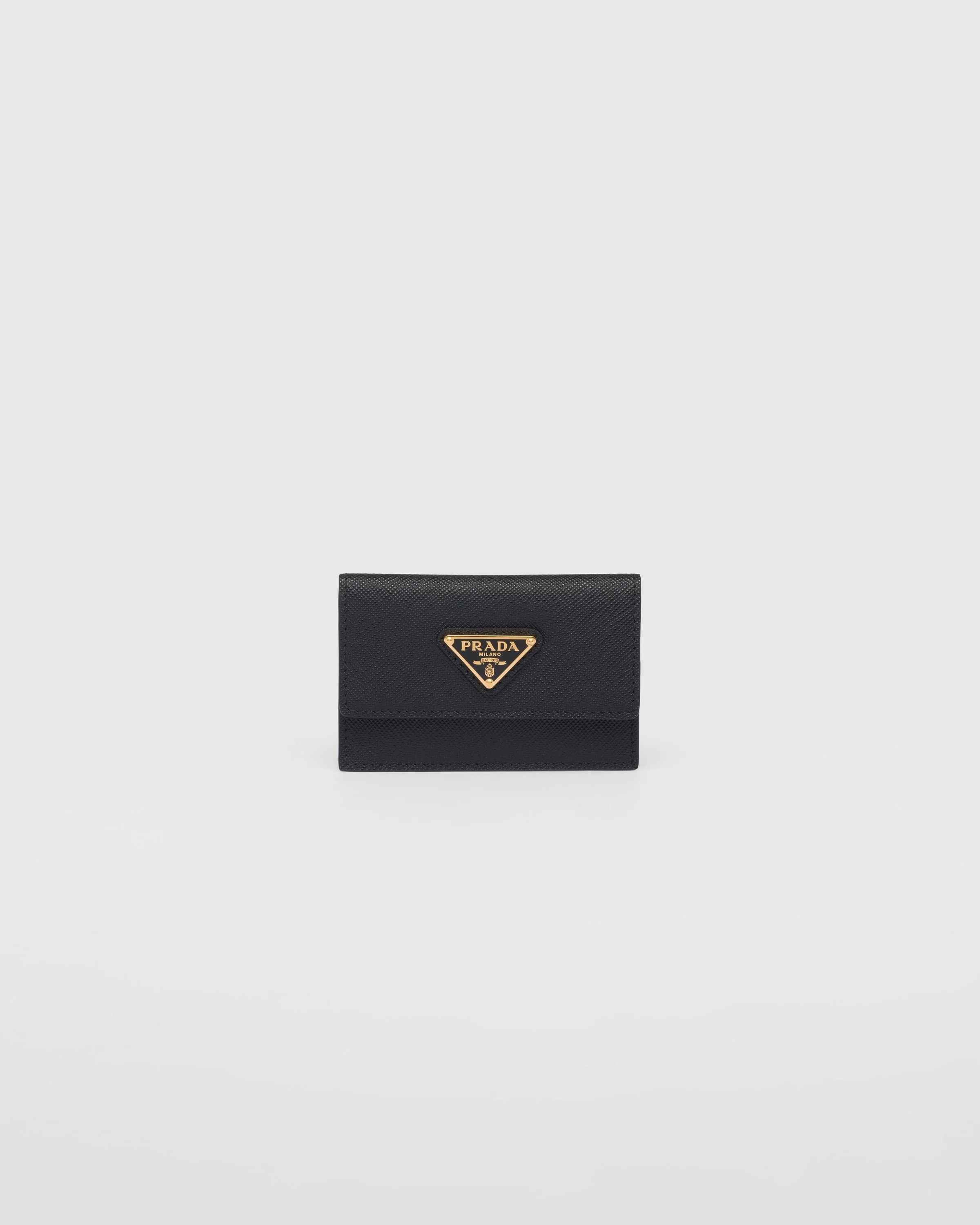 This refined, modern, Saffiano-leather card holder features an iconic, enameled-metal triangle logo, which first appeared on trunks designed by Mario Prada in 1913. - Product code: 1MF028_QHH_F0002 - Snap closure - Enameled-metal triangle logo - Two card slots - Moire and Saffiano leather lining - Imported Height: 7cm Width: 10cm MATERIALS Main material: Calfskin