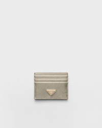 The unmistakable texture of Saffiano leather characterizes this sleek card holder. The accessory with six card slots is decorated with a tonal enameled metal triangle logo. - Product code: 1MC025_QHH_F0846 - Enameled metal triangle logo - Six card slots - One inside pocket - Moire and Saffiano leather lining - Imported Height: 8cm Width: 10cm MATERIALS Main material: Calfskin