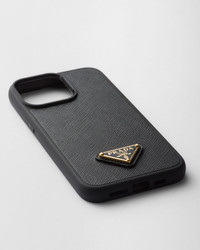This cover for iPhone 15 Pro Max combines Prada's emblematic codes in a modern and refined design. Emphasized by the elegant crosshatch texture with waxed finish of Saffiano leather, the accessory is completed by the iconic signature of the enameled metal triangle logo. - Product code: 1ZH183_QHH_F0002 - Enameled metal triangle logo - Imported MATERIALS Main material: Calfskin